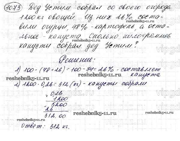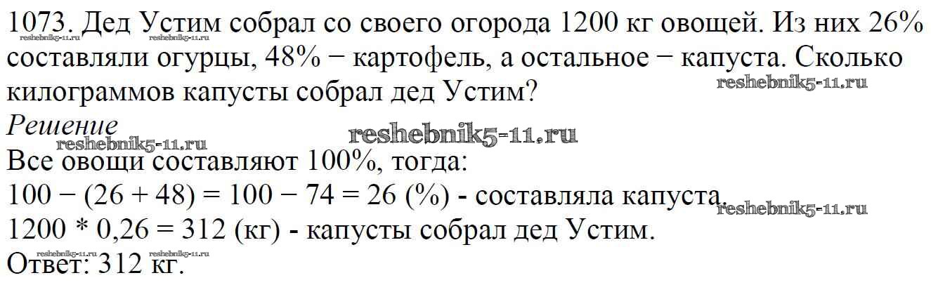 Готовая домашняя работа с ответами по Математике за 5 класс Мерзляк, Полонский, Якир Учебник Алгоритм успеха Вентана-граф 2016 ФГОС - §37. Проценты. Нахождение процентов от числа 1073