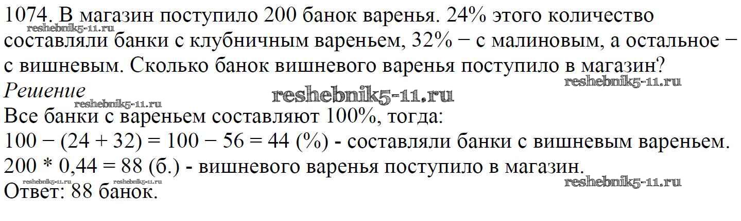 Готовая домашняя работа с ответами по Математике за 5 класс Мерзляк, Полонский, Якир Учебник Алгоритм успеха Вентана-граф 2016 ФГОС - §37. Проценты. Нахождение процентов от числа 1074