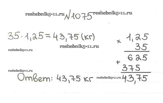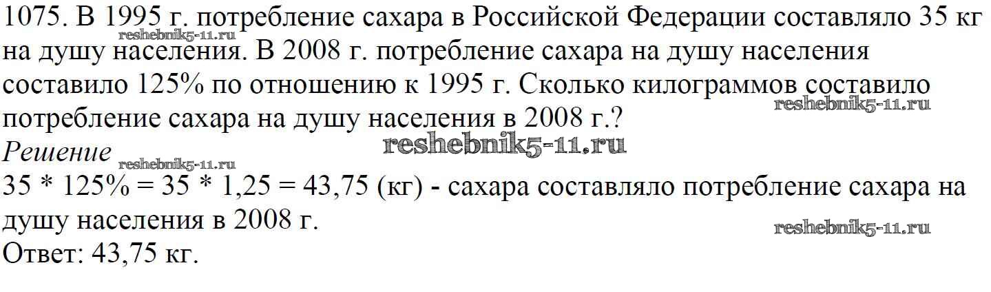 Готовая домашняя работа с ответами по Математике за 5 класс Мерзляк, Полонский, Якир Учебник Алгоритм успеха Вентана-граф 2016 ФГОС - §37. Проценты. Нахождение процентов от числа 1075