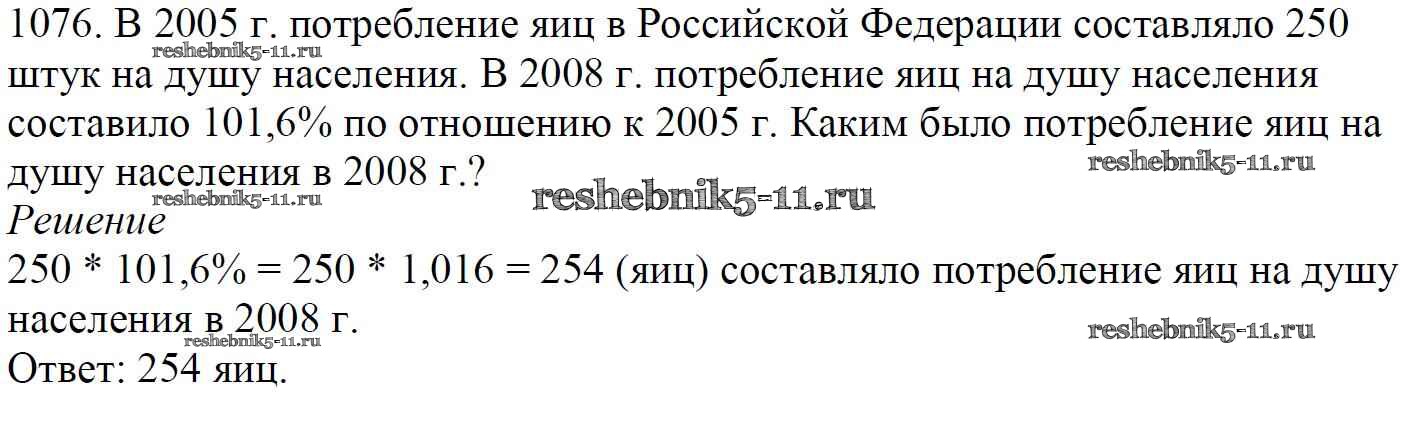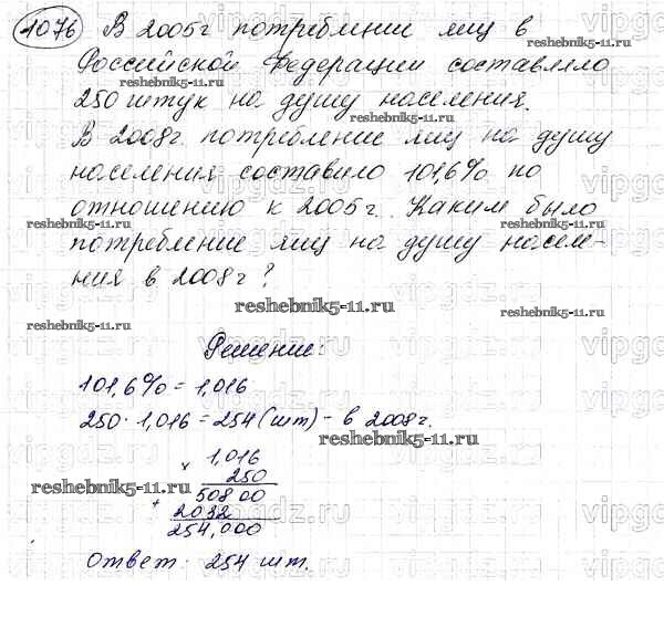 Готовая домашняя работа с ответами по Математике за 5 класс Мерзляк, Полонский, Якир Учебник Алгоритм успеха Вентана-граф 2016 ФГОС - §37. Проценты. Нахождение процентов от числа 1076