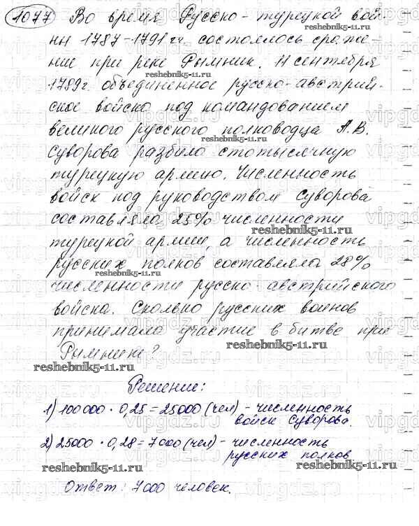 Готовая домашняя работа с ответами по Математике за 5 класс Мерзляк, Полонский, Якир Учебник Алгоритм успеха Вентана-граф 2016 ФГОС - §37. Проценты. Нахождение процентов от числа 1077