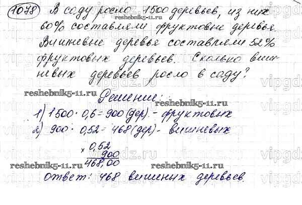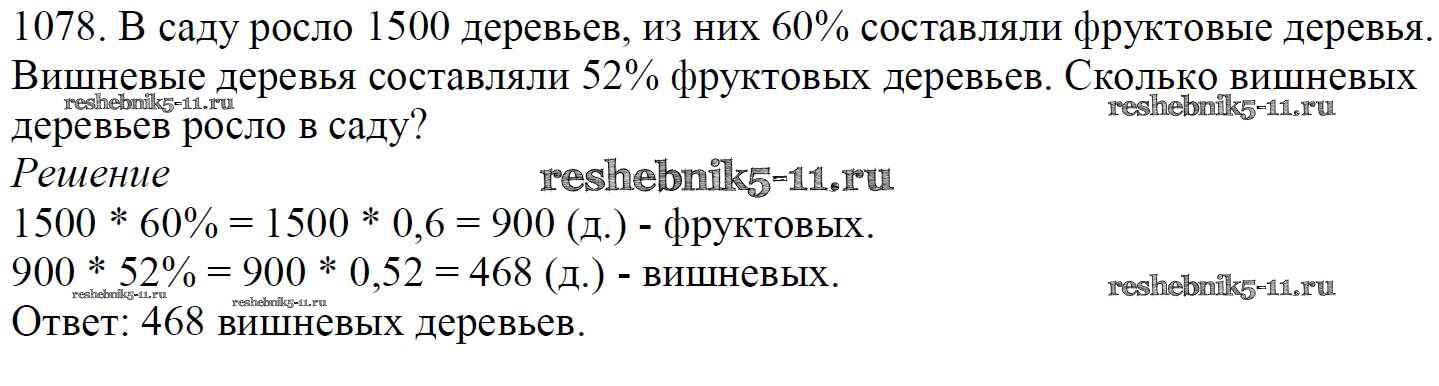 Готовая домашняя работа с ответами по Математике за 5 класс Мерзляк, Полонский, Якир Учебник Алгоритм успеха Вентана-граф 2016 ФГОС - §37. Проценты. Нахождение процентов от числа 1078