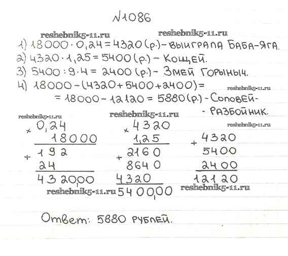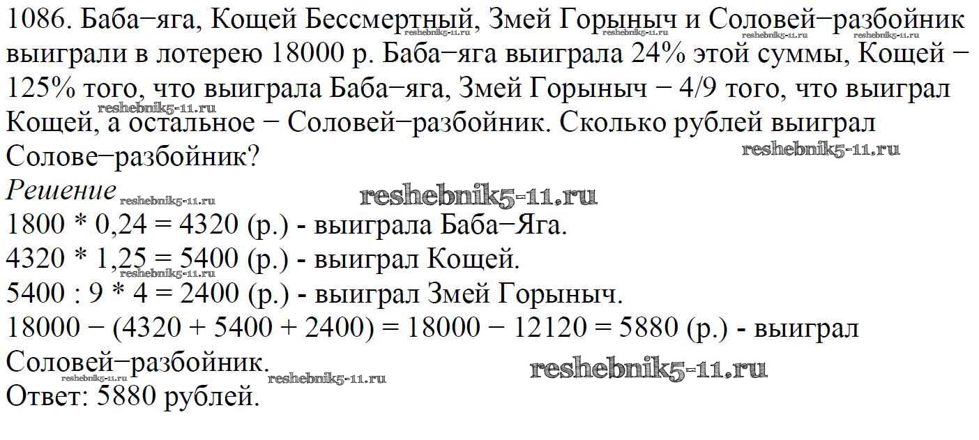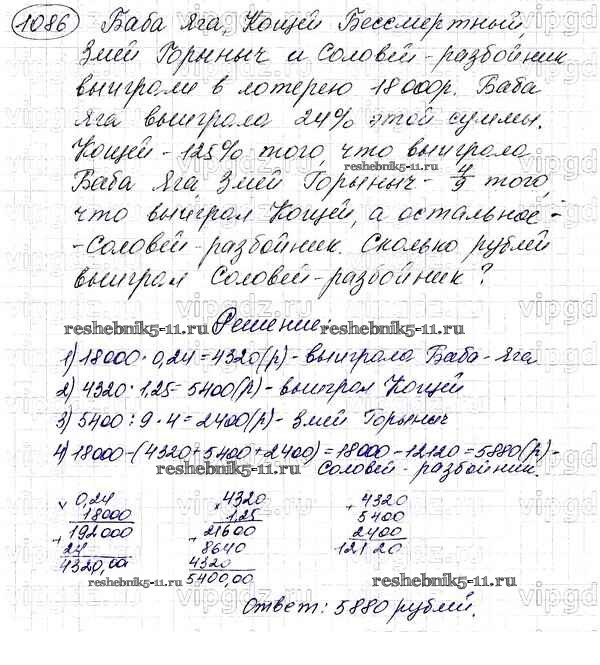 Готовая домашняя работа с ответами по Математике за 5 класс Мерзляк, Полонский, Якир Учебник Алгоритм успеха Вентана-граф 2016 ФГОС - §37. Проценты. Нахождение процентов от числа 1086