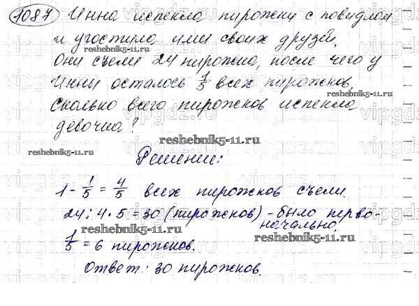 Готовая домашняя работа с ответами по Математике за 5 класс Мерзляк, Полонский, Якир Учебник Алгоритм успеха Вентана-граф 2016 ФГОС - §37. Проценты. Нахождение процентов от числа 1087