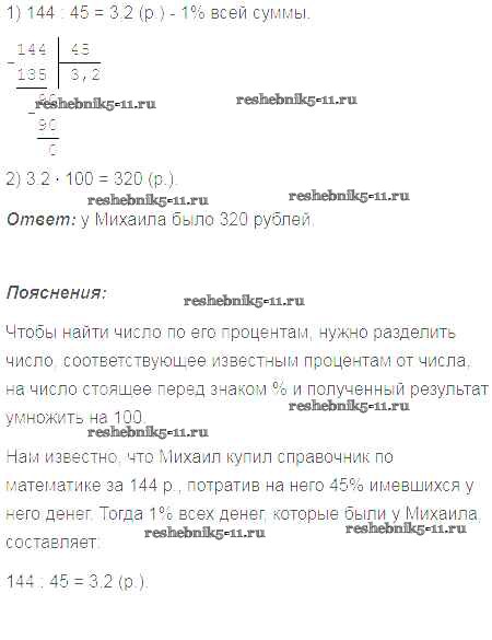 Готовая домашняя работа с ответами по Математике за 5 класс Мерзляк, Полонский, Якир Учебник Алгоритм успеха Вентана-граф 2016 ФГОС - §38. Нахождение числа по его процентам 1096