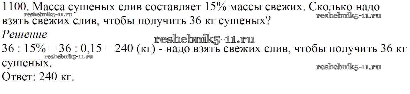 Готовая домашняя работа с ответами по Математике за 5 класс Мерзляк, Полонский, Якир Учебник Алгоритм успеха Вентана-граф 2016 ФГОС - §38. Нахождение числа по его процентам 1100