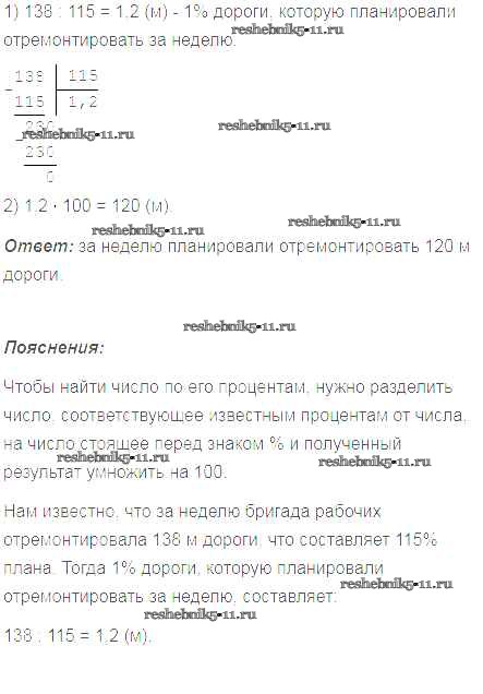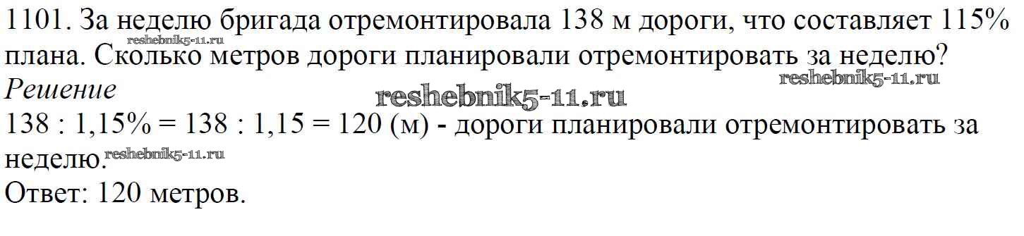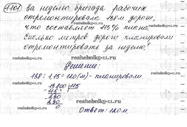 Готовая домашняя работа с ответами по Математике за 5 класс Мерзляк, Полонский, Якир Учебник Алгоритм успеха Вентана-граф 2016 ФГОС - §38. Нахождение числа по его процентам 1101