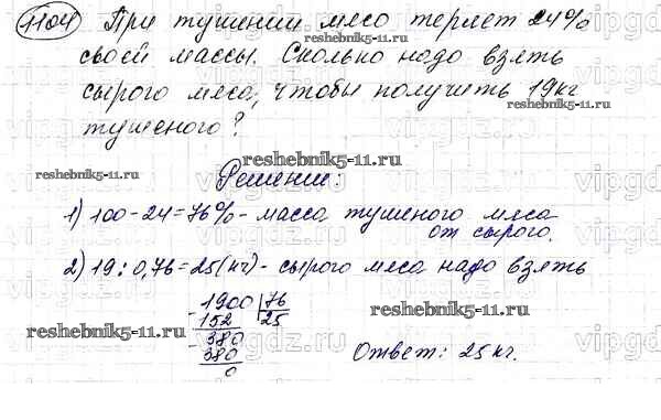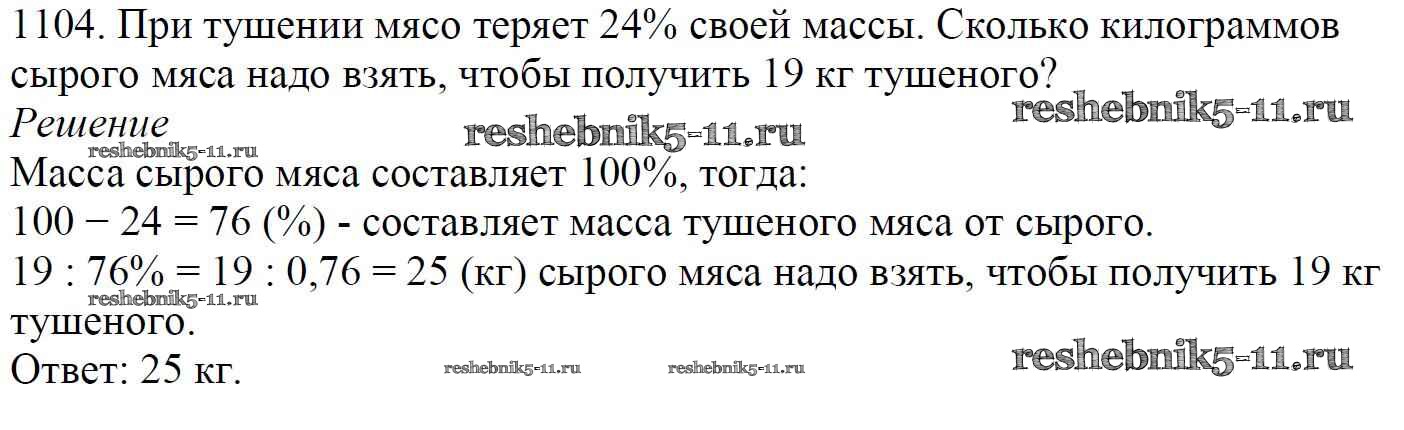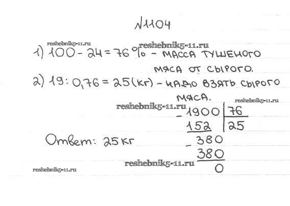 Готовая домашняя работа с ответами по Математике за 5 класс Мерзляк, Полонский, Якир Учебник Алгоритм успеха Вентана-граф 2016 ФГОС - §38. Нахождение числа по его процентам 1104