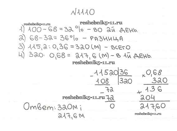 Готовая домашняя работа с ответами по Математике за 5 класс Мерзляк, Полонский, Якир Учебник Алгоритм успеха Вентана-граф 2016 ФГОС - §38. Нахождение числа по его процентам 1110