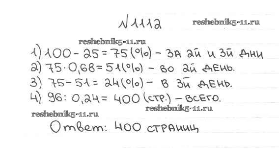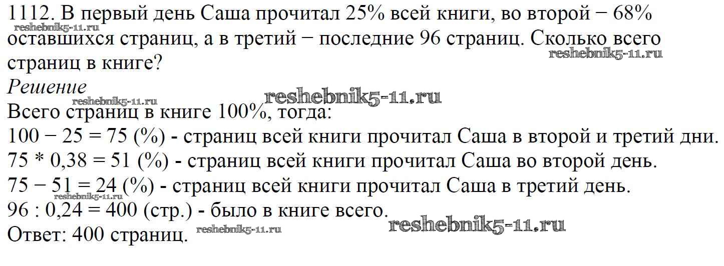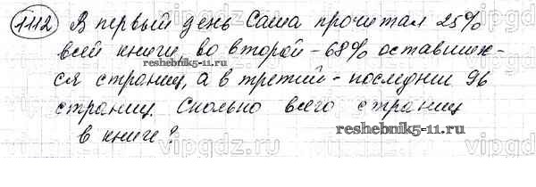 Готовая домашняя работа с ответами по Математике за 5 класс Мерзляк, Полонский, Якир Учебник Алгоритм успеха Вентана-граф 2016 ФГОС - §38. Нахождение числа по его процентам 1112