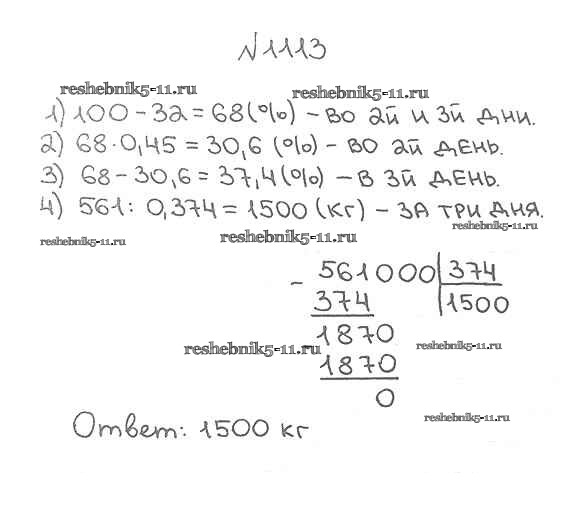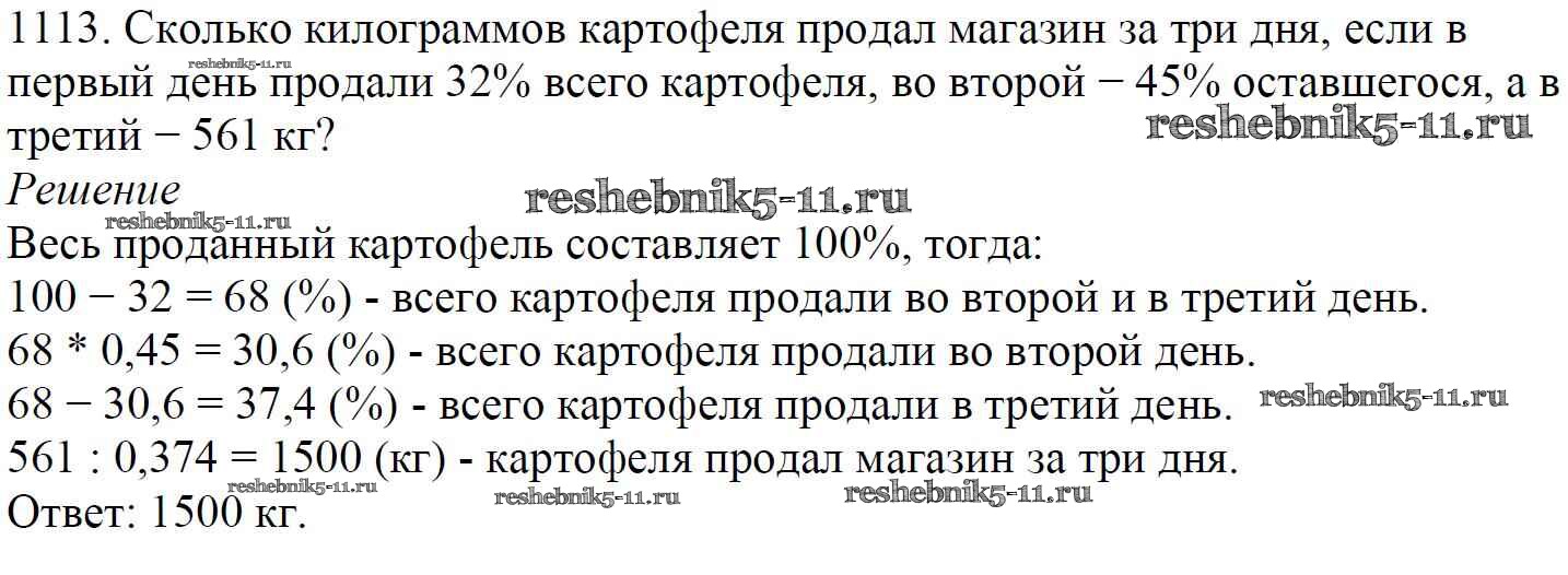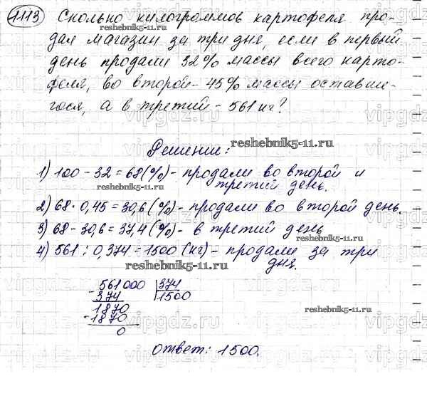 Готовая домашняя работа с ответами по Математике за 5 класс Мерзляк, Полонский, Якир Учебник Алгоритм успеха Вентана-граф 2016 ФГОС - §38. Нахождение числа по его процентам 1113