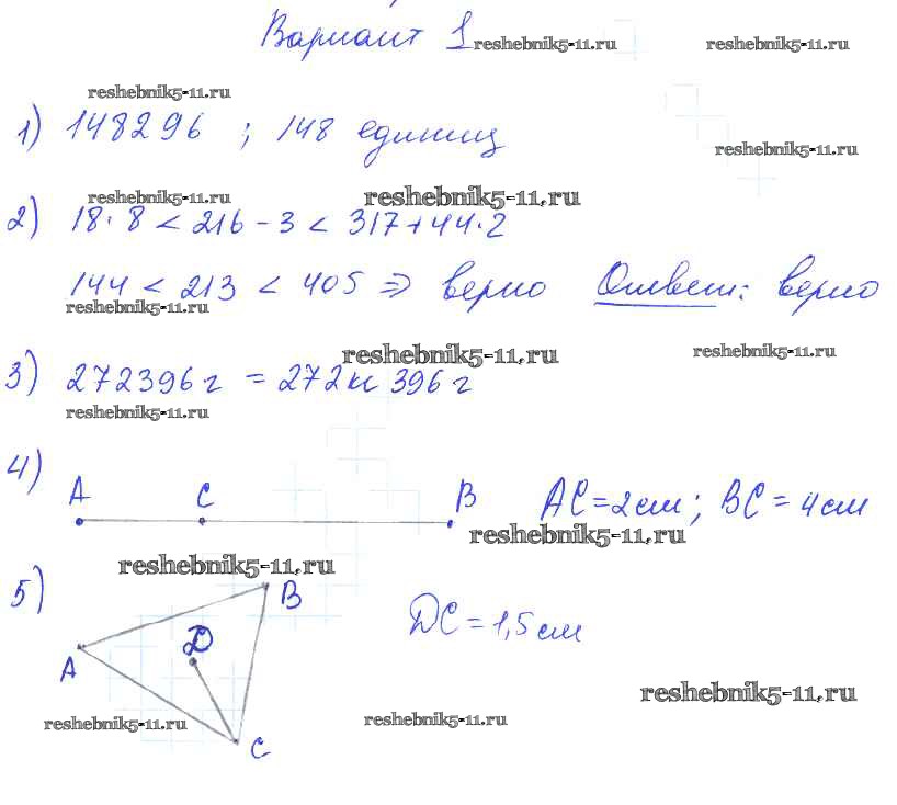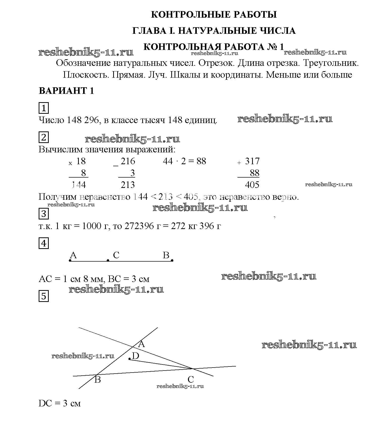Готовая домашняя работа с ответами по Математике за 5 класс Попов Дидактические материалы УМК Экзамен 2017 ФГОС - КР №1. Обозначение натуральных чисел. Отрезок. Длина отрезка. Треугольник вариант №1