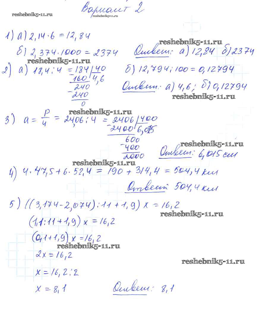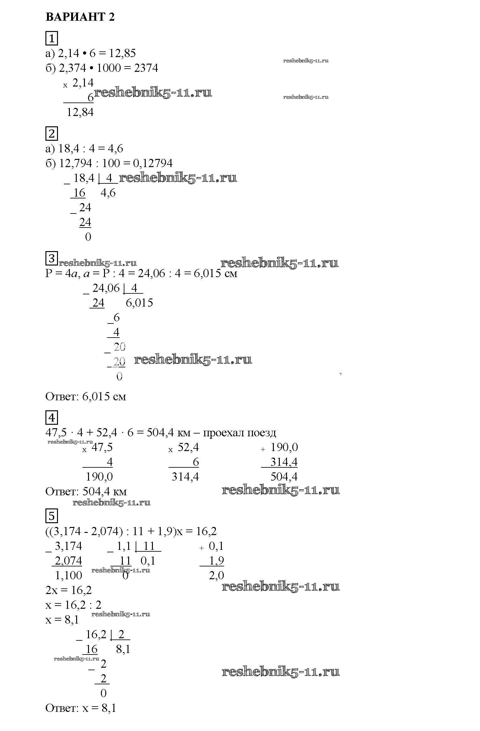 Готовая домашняя работа с ответами по Математике за 5 класс Попов Дидактические материалы УМК Экзамен 2017 ФГОС - КР №10. Умножение и деление десятичных дробей на натуральные числа вариант №2