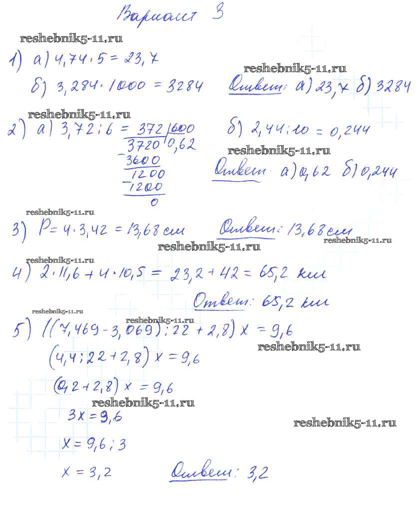 Готовая домашняя работа с ответами по Математике за 5 класс Попов Дидактические материалы УМК Экзамен 2017 ФГОС - КР №10. Умножение и деление десятичных дробей на натуральные числа вариант №3