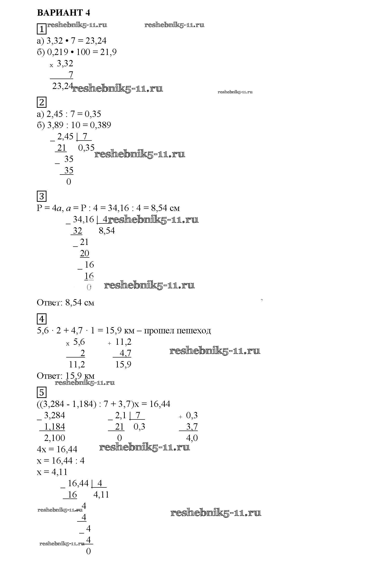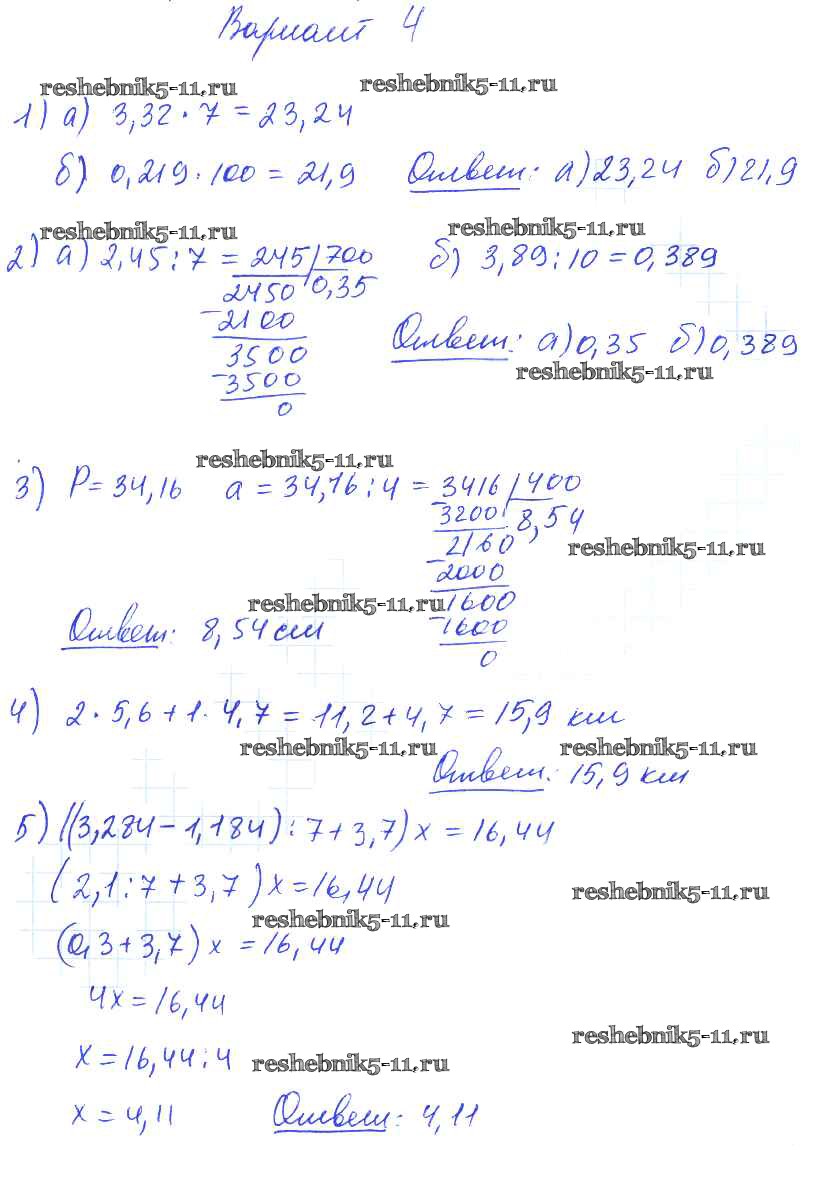 Готовая домашняя работа с ответами по Математике за 5 класс Попов Дидактические материалы УМК Экзамен 2017 ФГОС - КР №10. Умножение и деление десятичных дробей на натуральные числа вариант №4