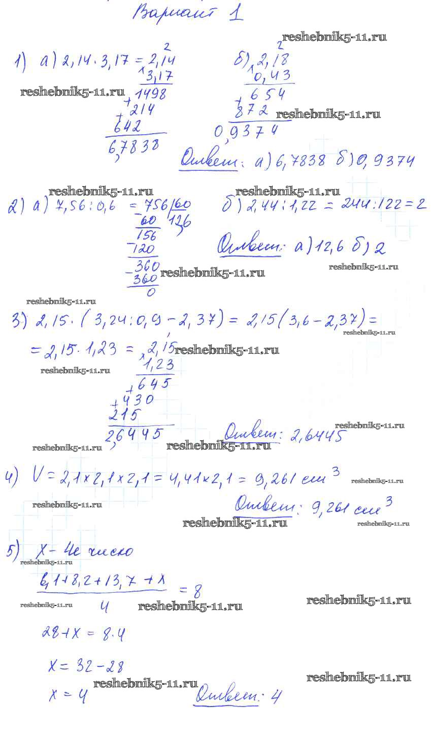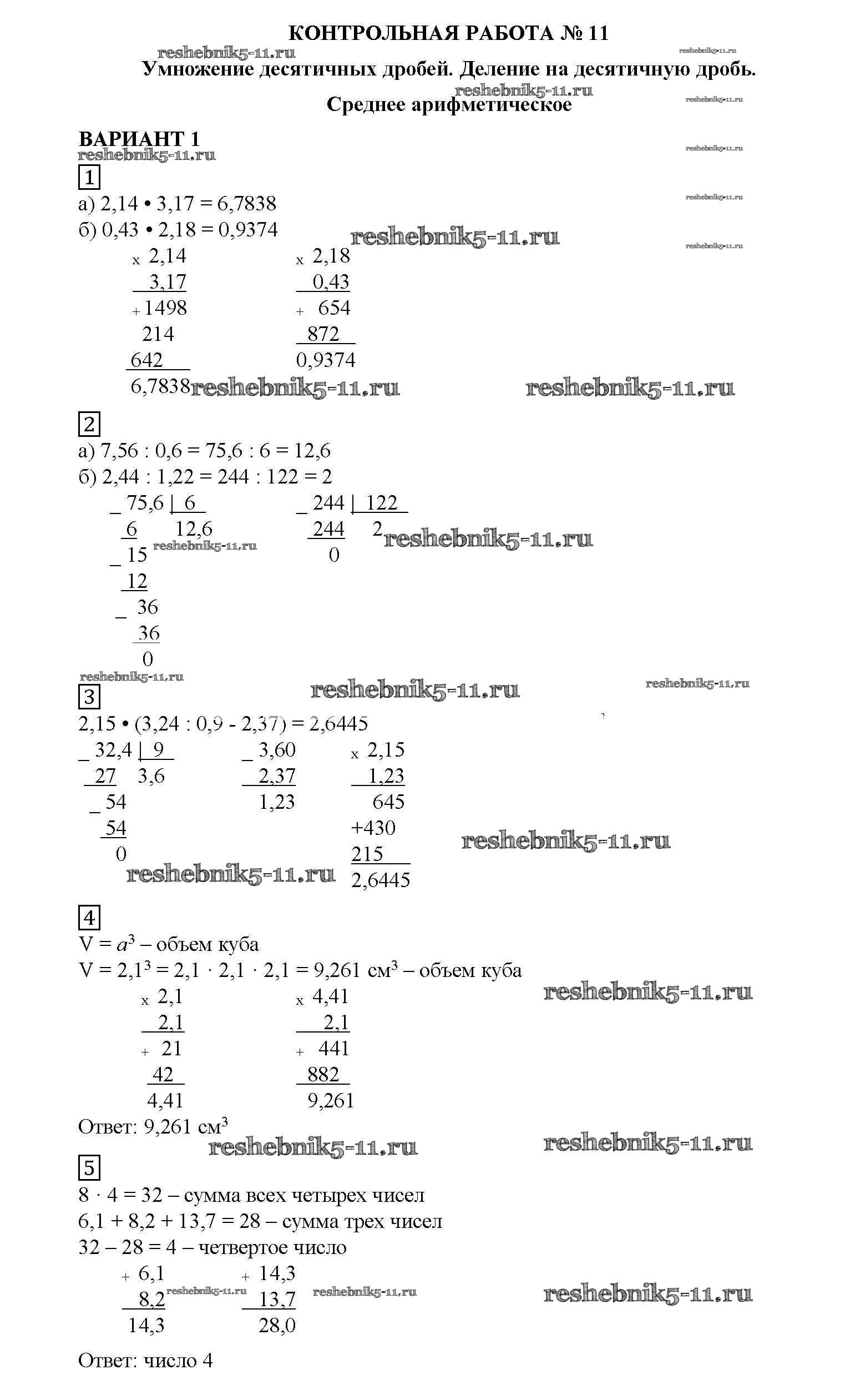 Готовая домашняя работа с ответами по Математике за 5 класс Попов Дидактические материалы УМК Экзамен 2017 ФГОС - КР №11. Умножение десятичных дробей. Деление на десятичную дробь вариант №1
