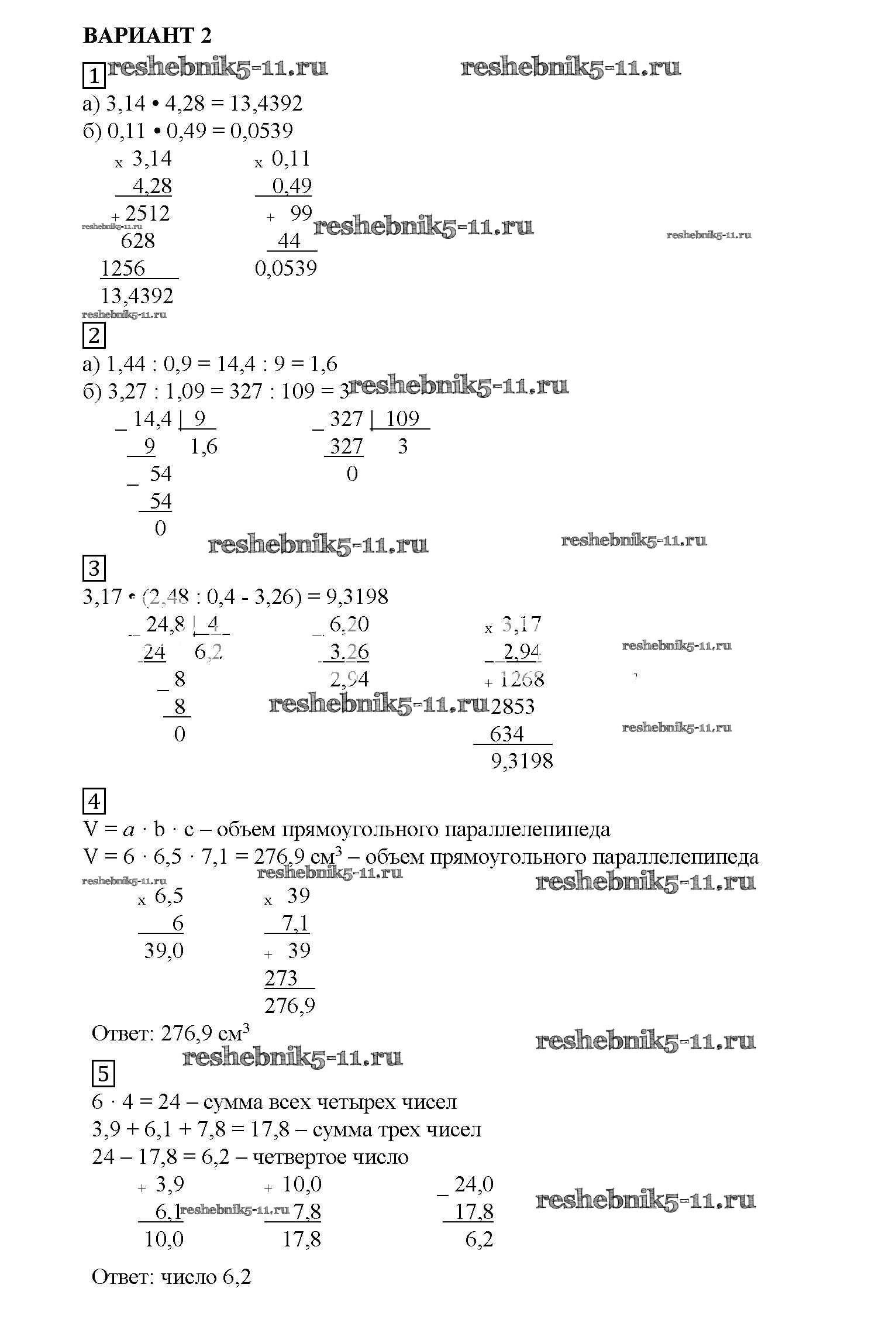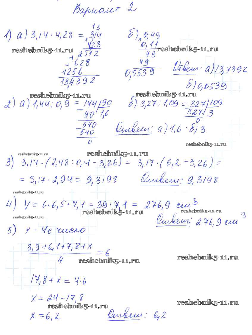 Готовая домашняя работа с ответами по Математике за 5 класс Попов Дидактические материалы УМК Экзамен 2017 ФГОС - КР №11. Умножение десятичных дробей. Деление на десятичную дробь вариант №2