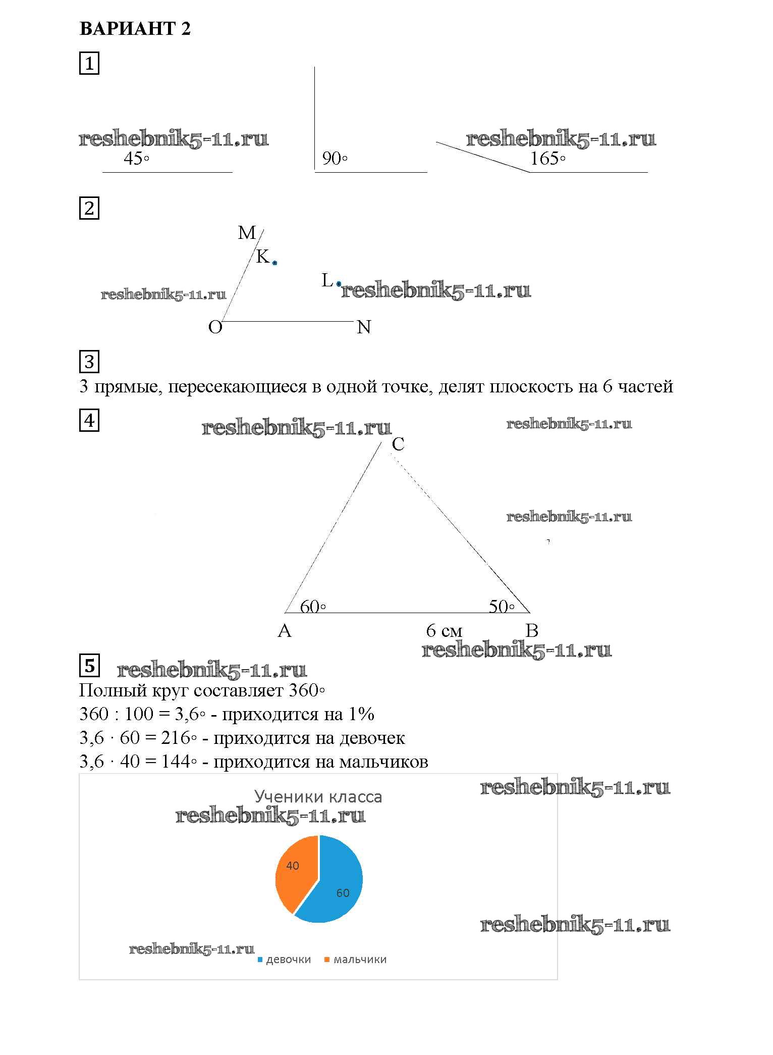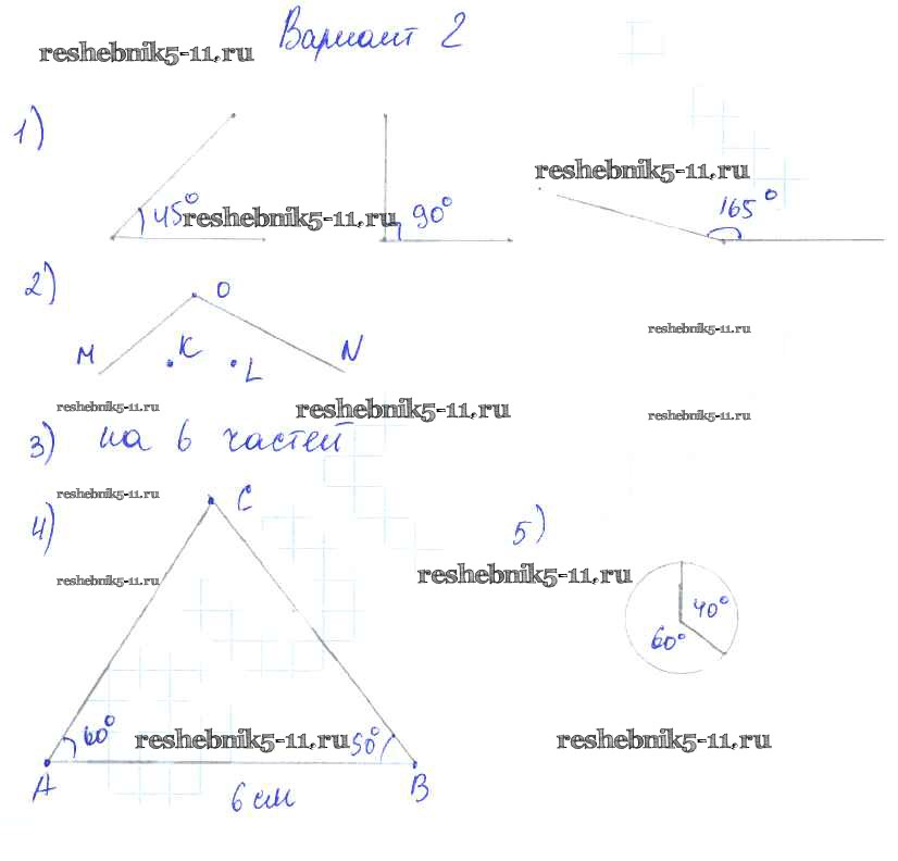 Готовая домашняя работа с ответами по Математике за 5 класс Попов Дидактические материалы УМК Экзамен 2017 ФГОС - КР №13. Угол. Чертежный треугольник. Транспортир вариант №2