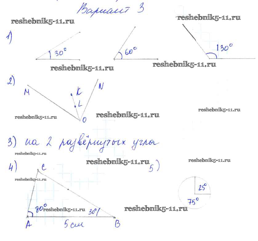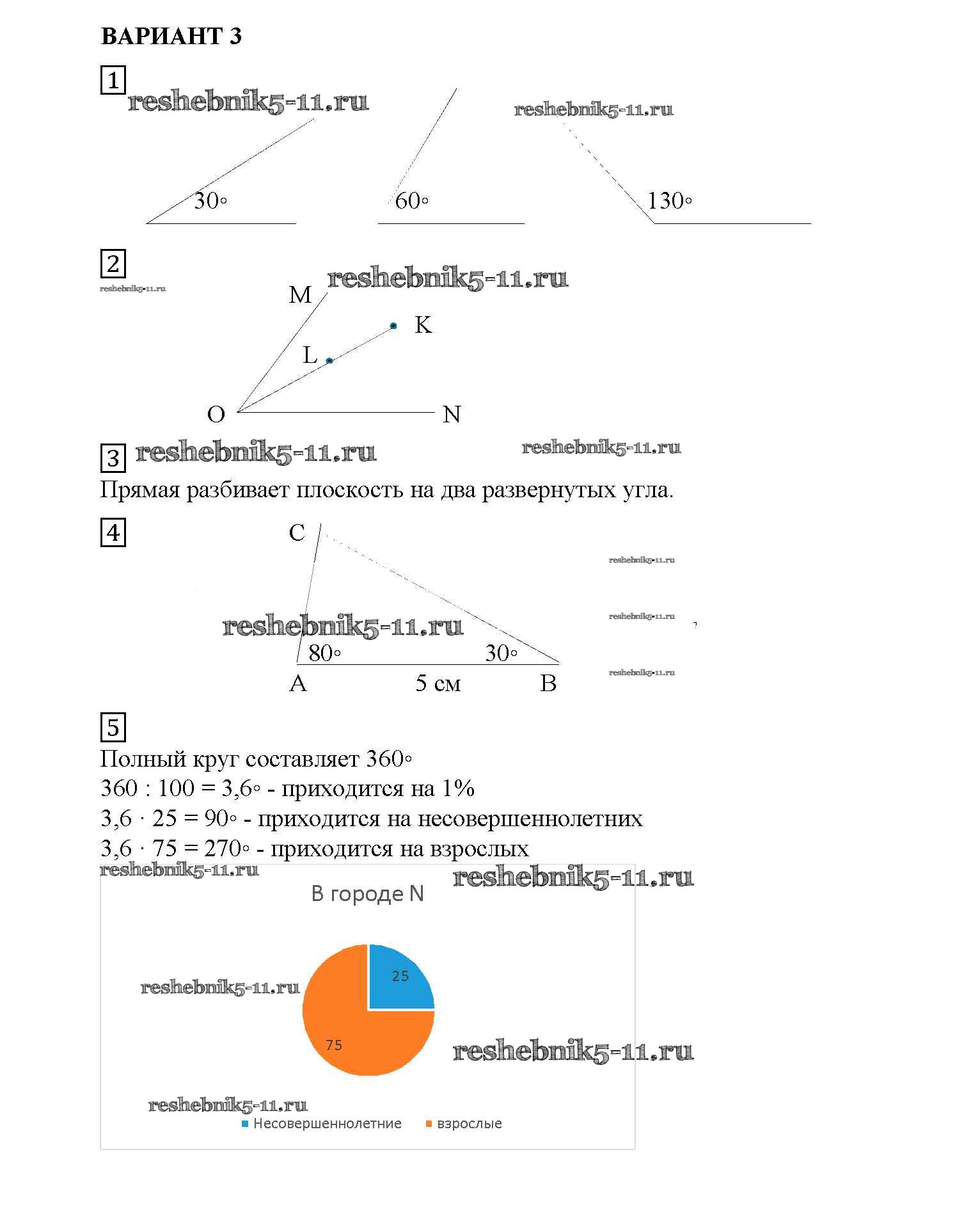 Готовая домашняя работа с ответами по Математике за 5 класс Попов Дидактические материалы УМК Экзамен 2017 ФГОС - КР №13. Угол. Чертежный треугольник. Транспортир вариант №3