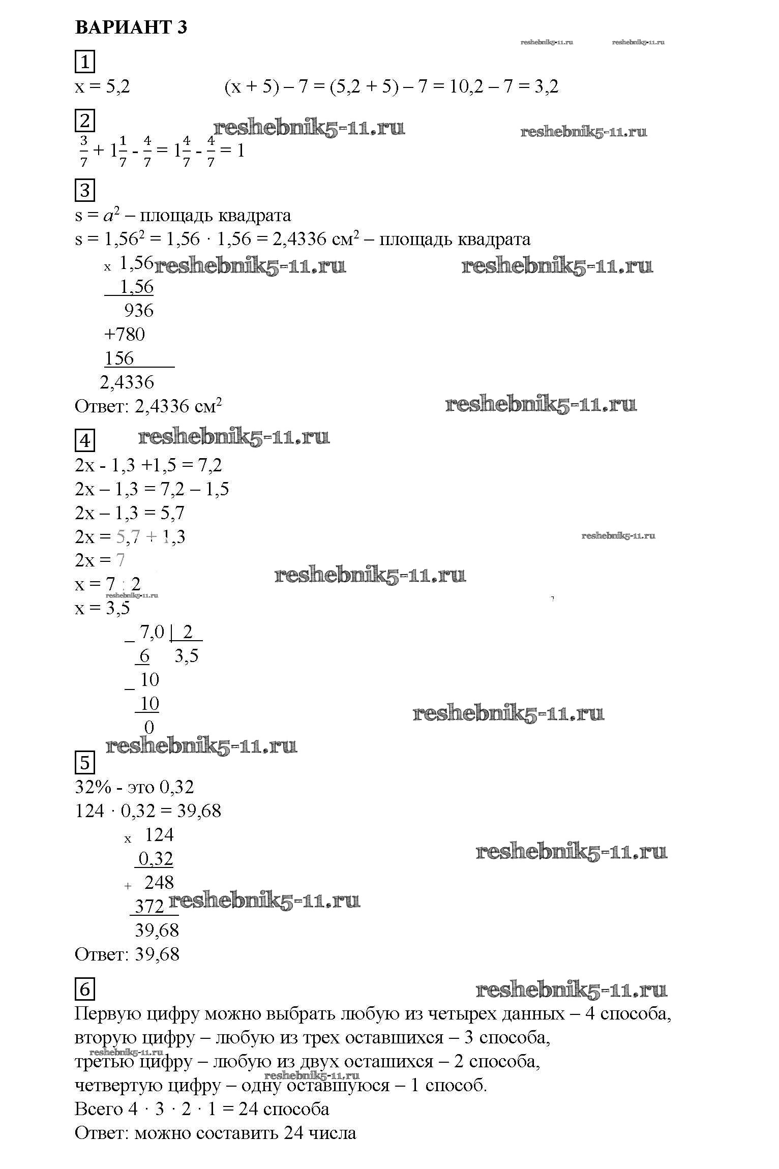 Готовая домашняя работа с ответами по Математике за 5 класс Попов Дидактические материалы УМК Экзамен 2017 ФГОС - КР №14. Итоговая вариант №3