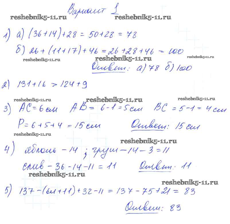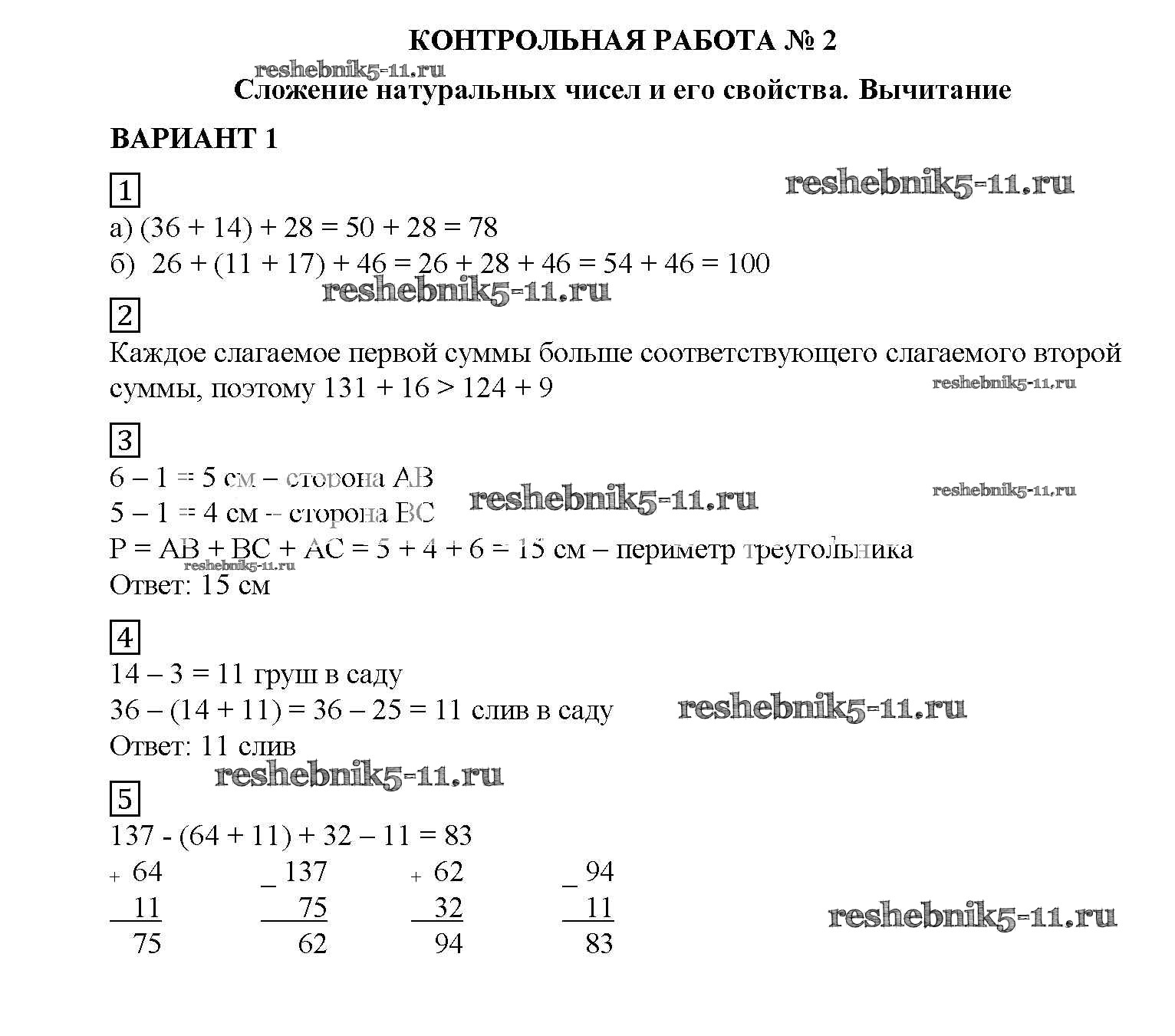 Готовая домашняя работа с ответами по Математике за 5 класс Попов Дидактические материалы УМК Экзамен 2017 ФГОС - КР №2. Сложение натуральных чисел и его свойства. Вычитание вариант №1