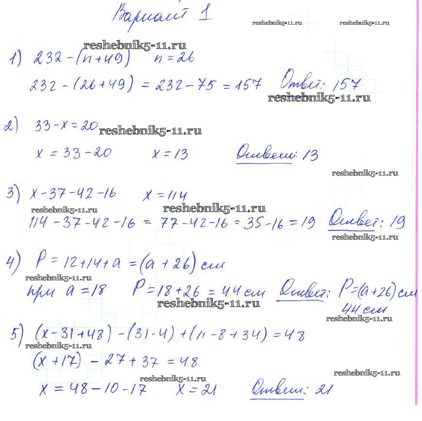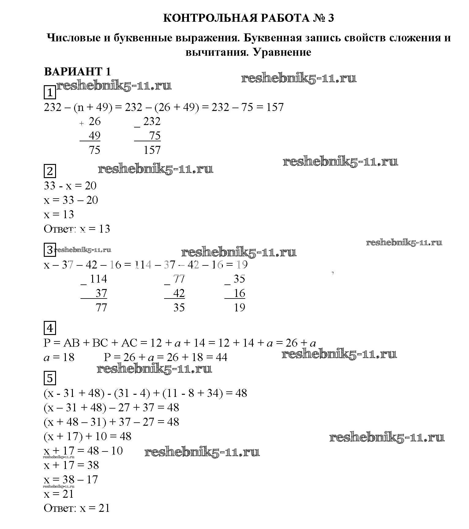 Готовая домашняя работа с ответами по Математике за 5 класс Попов Дидактические материалы УМК Экзамен 2017 ФГОС - КР №3. Числовые и буквенные выражения. Уравнение вариант №1