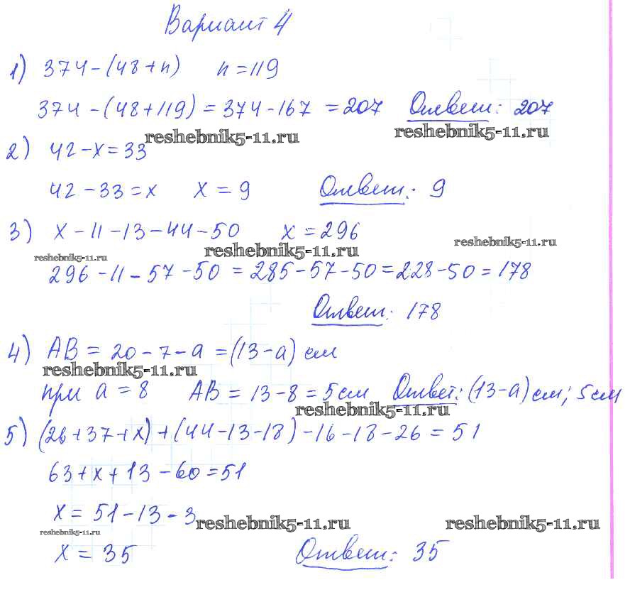 Готовая домашняя работа с ответами по Математике за 5 класс Попов Дидактические материалы УМК Экзамен 2017 ФГОС - КР №3. Числовые и буквенные выражения. Уравнение вариант №4