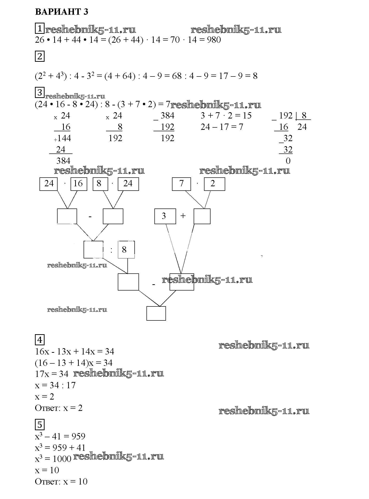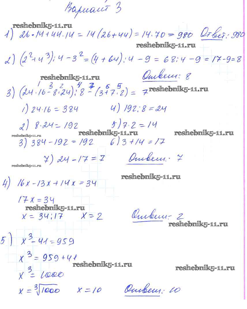 Готовая домашняя работа с ответами по Математике за 5 класс Попов Дидактические материалы УМК Экзамен 2017 ФГОС - КР №5. Упрощение выражений. Порядок выполнения действий. Квадрат и куб числа вариант №3