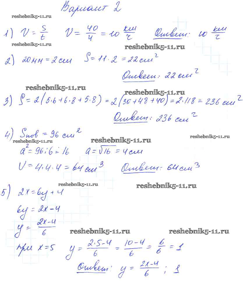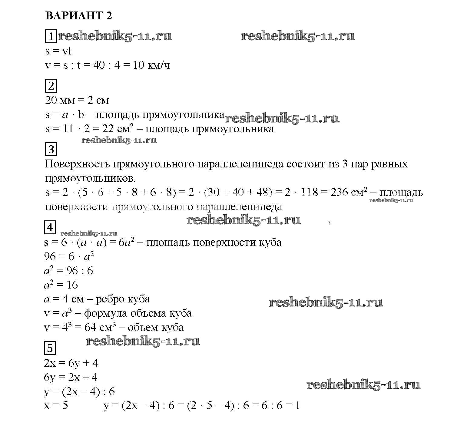 Готовая домашняя работа с ответами по Математике за 5 класс Попов Дидактические материалы УМК Экзамен 2017 ФГОС - КР №6. Формулы. Площадь. Формула площади прямоугольника вариант №2