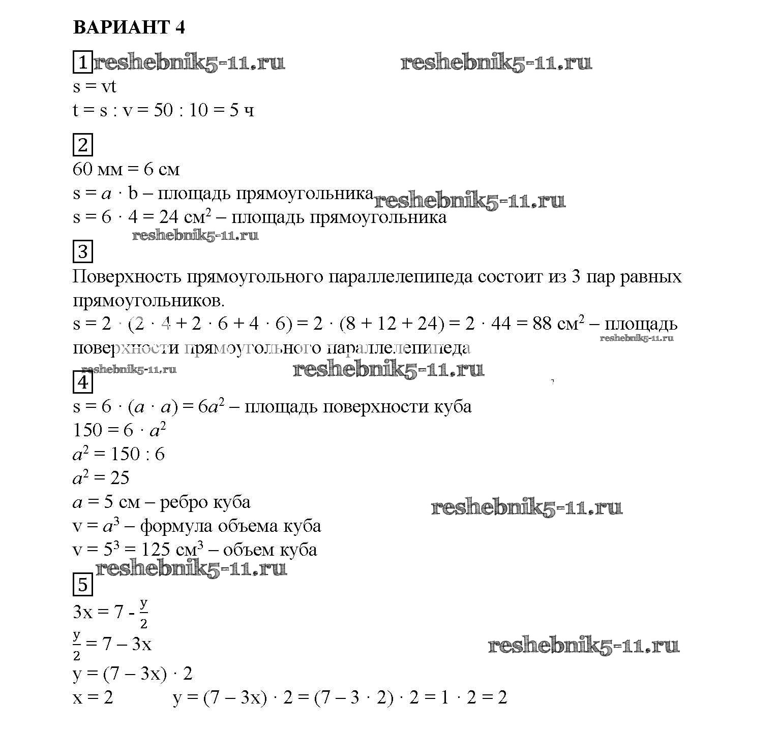 Готовая домашняя работа с ответами по Математике за 5 класс Попов Дидактические материалы УМК Экзамен 2017 ФГОС - КР №6. Формулы. Площадь. Формула площади прямоугольника вариант №4