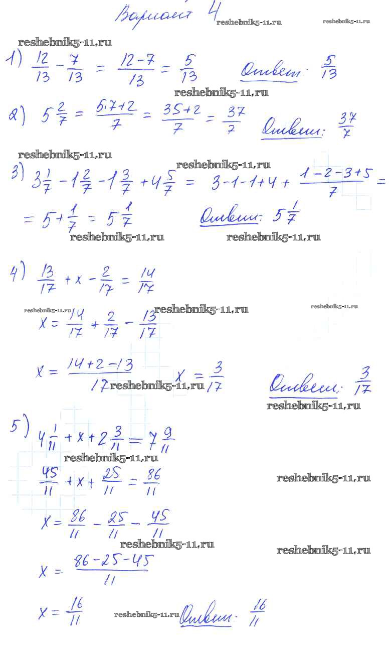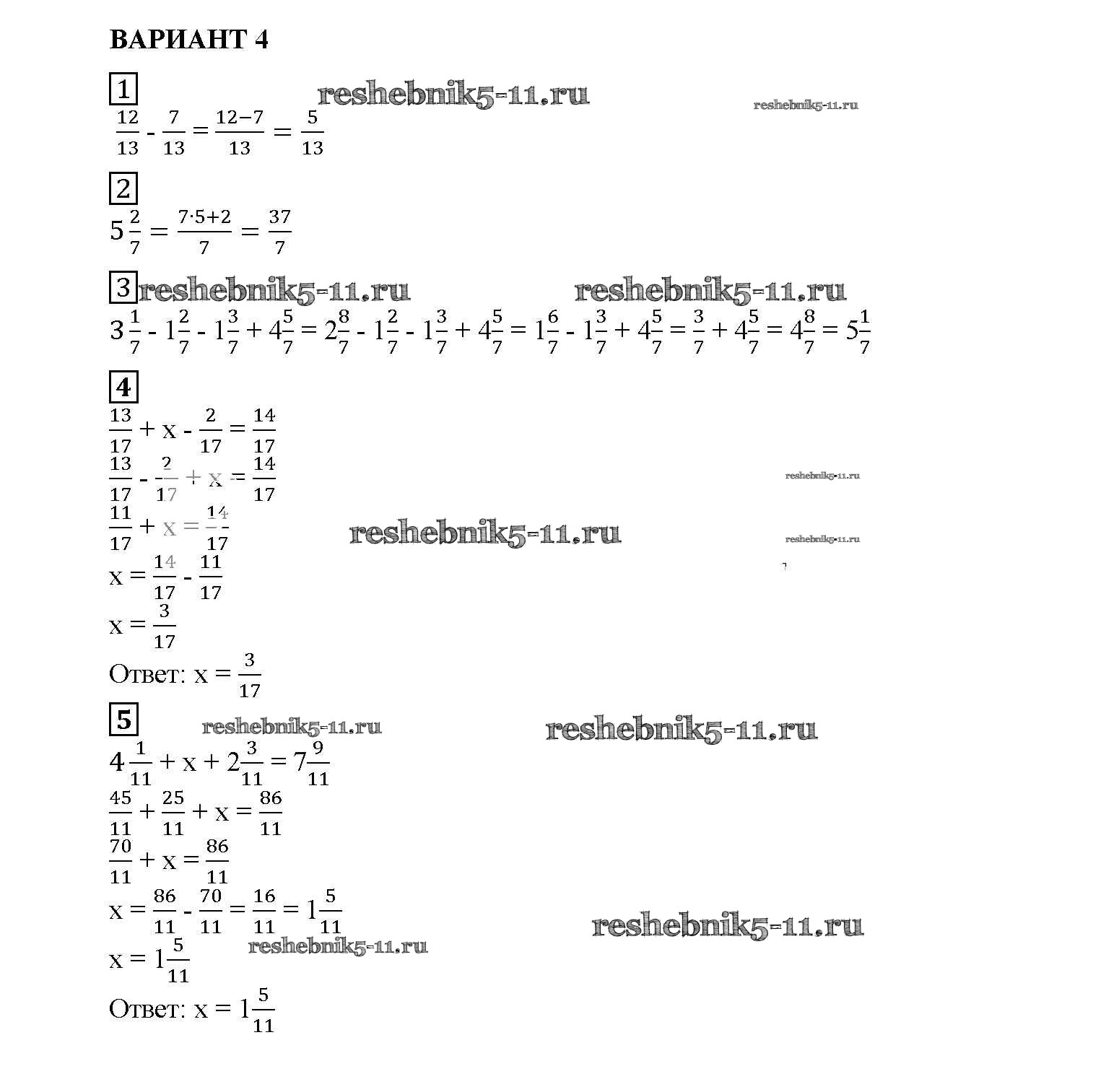 Готовая домашняя работа с ответами по Математике за 5 класс Попов Дидактические материалы УМК Экзамен 2017 ФГОС - КР №8. Сложение и вычитание дробей с одинаковыми знаменателями. Деление и дроби вариант №4