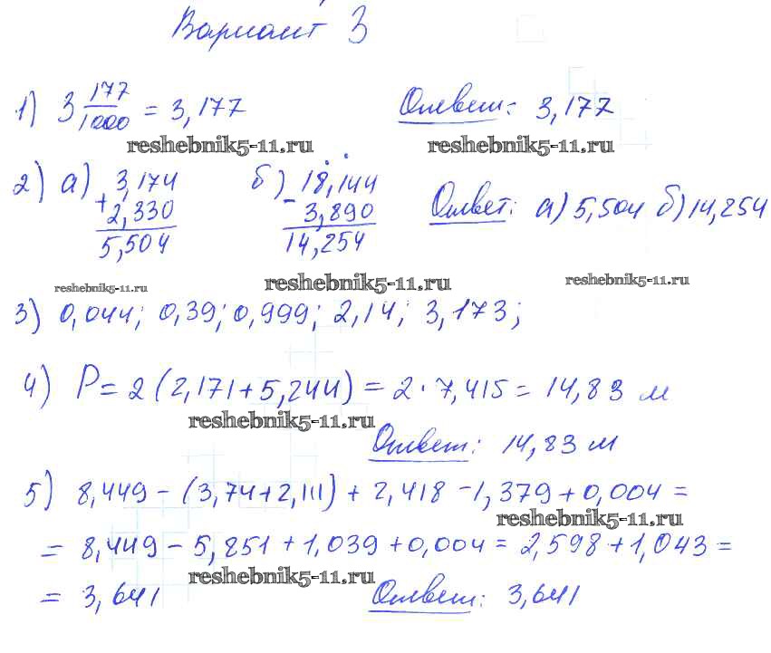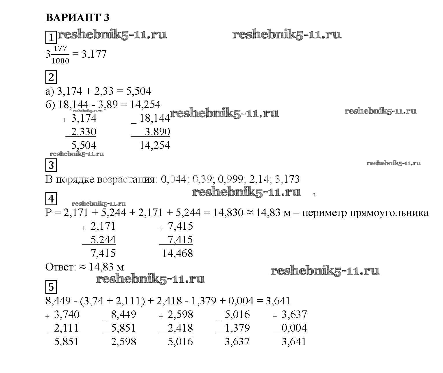 Готовая домашняя работа с ответами по Математике за 5 класс Попов Дидактические материалы УМК Экзамен 2017 ФГОС - КР №9. Десятичная запись дробных чисел. Сравнение десятичных дробей вариант №3