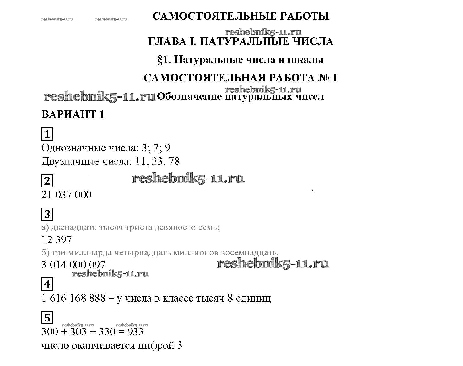 Готовая домашняя работа с ответами по Математике за 5 класс Попов Дидактические материалы УМК Экзамен 2017 ФГОС - СР №1. Обозначение натуральных чисел вариант №1