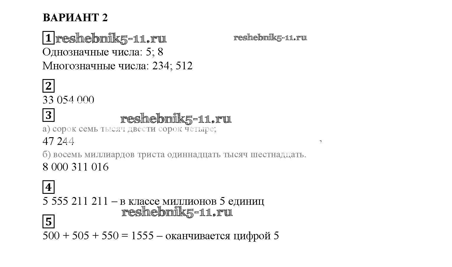 Готовая домашняя работа с ответами по Математике за 5 класс Попов Дидактические материалы УМК Экзамен 2017 ФГОС - СР №1. Обозначение натуральных чисел вариант №2