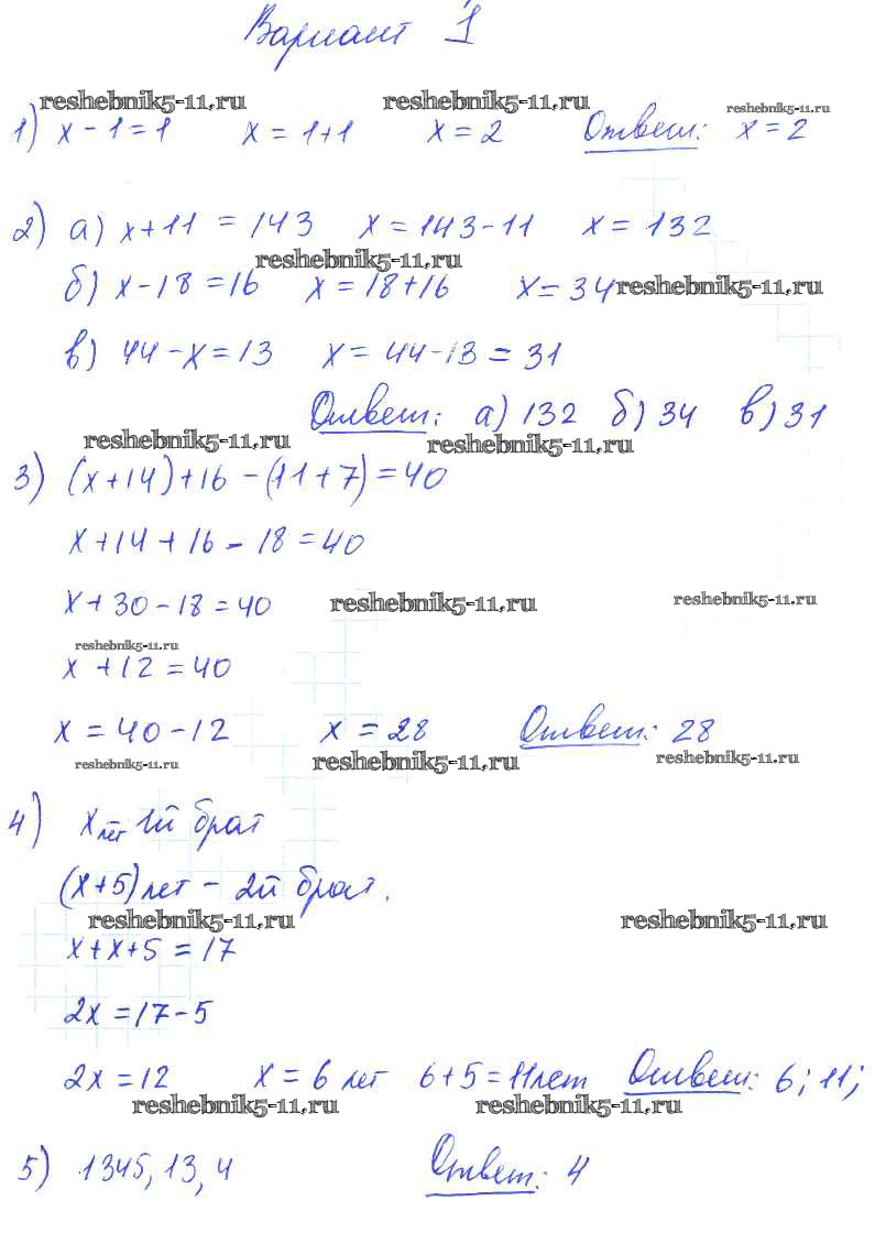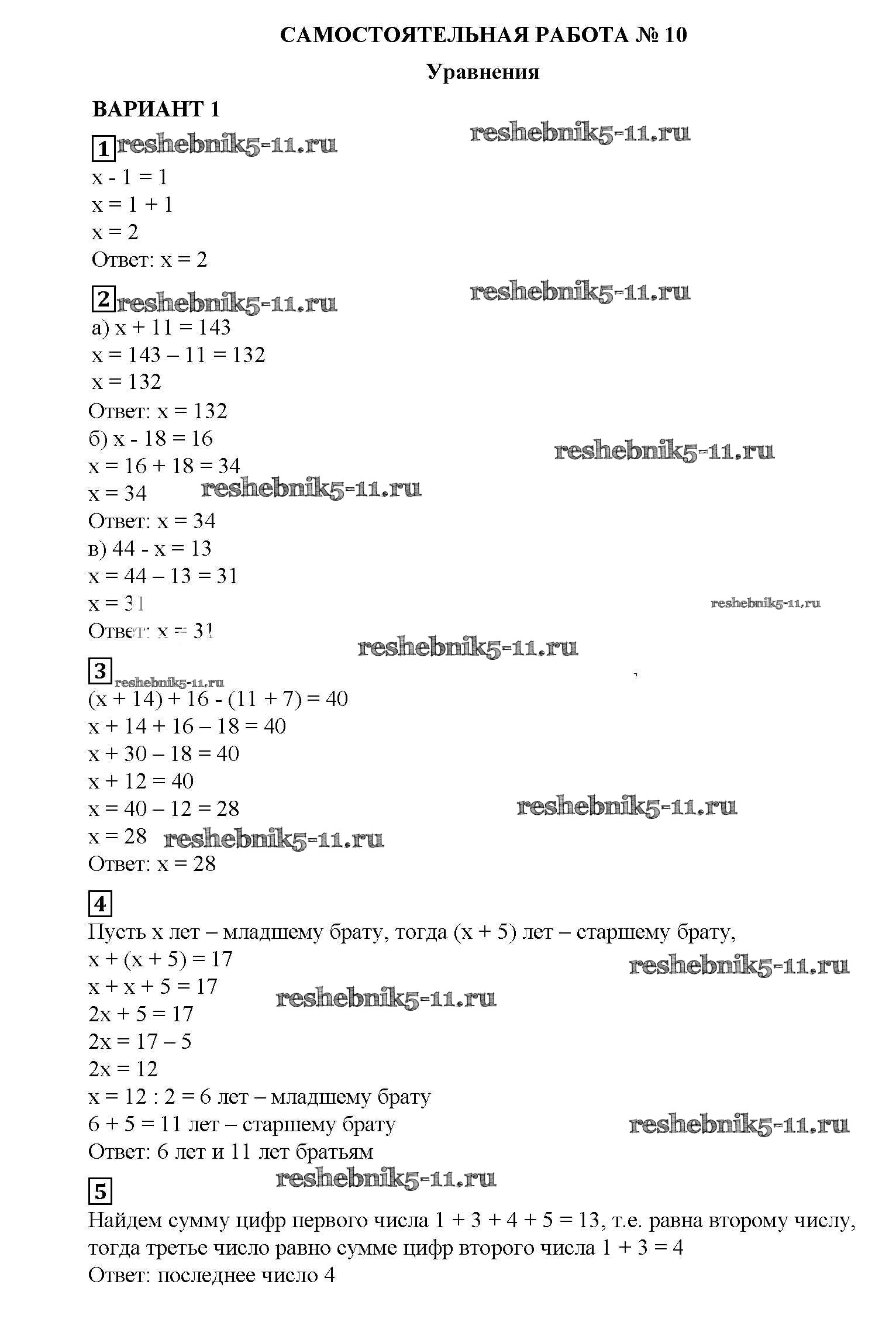 Готовая домашняя работа с ответами по Математике за 5 класс Попов Дидактические материалы УМК Экзамен 2017 ФГОС - СР №10. Уравнения вариант №1