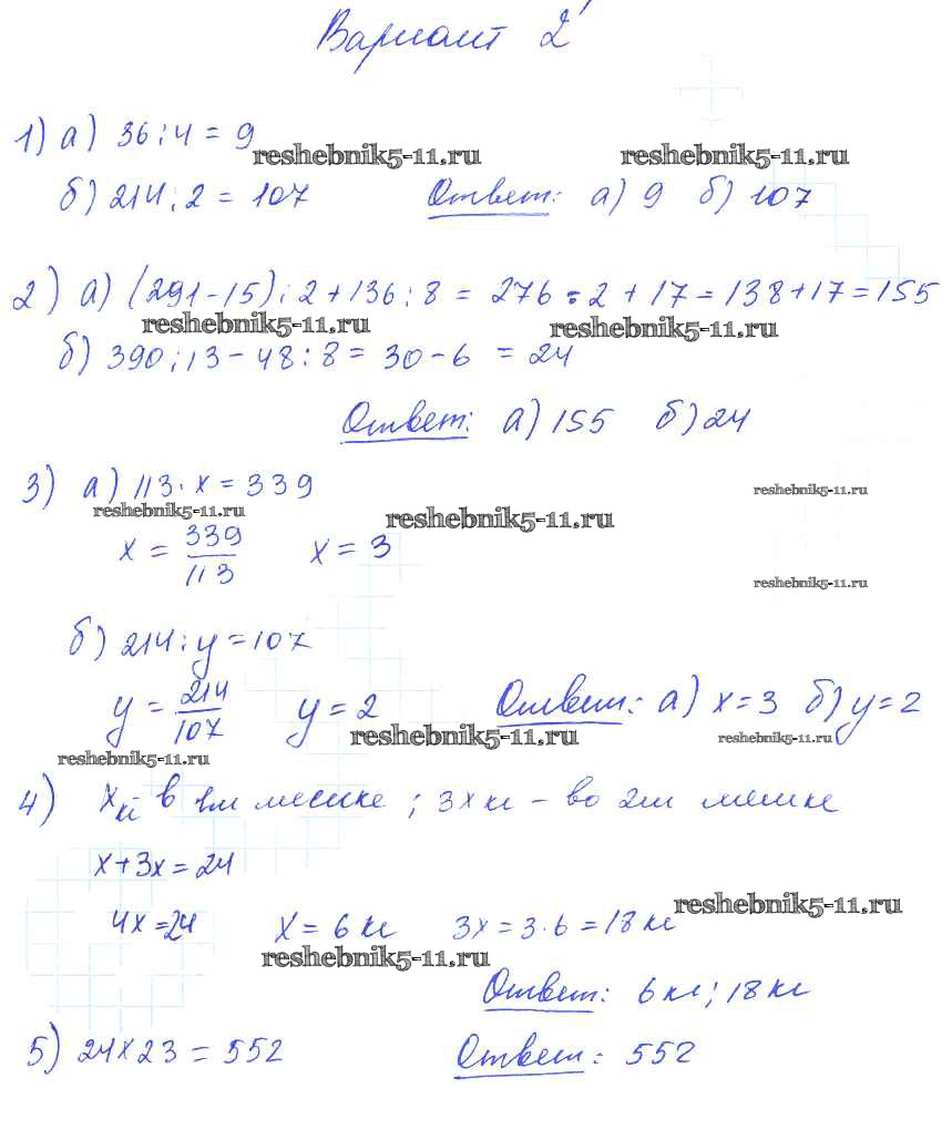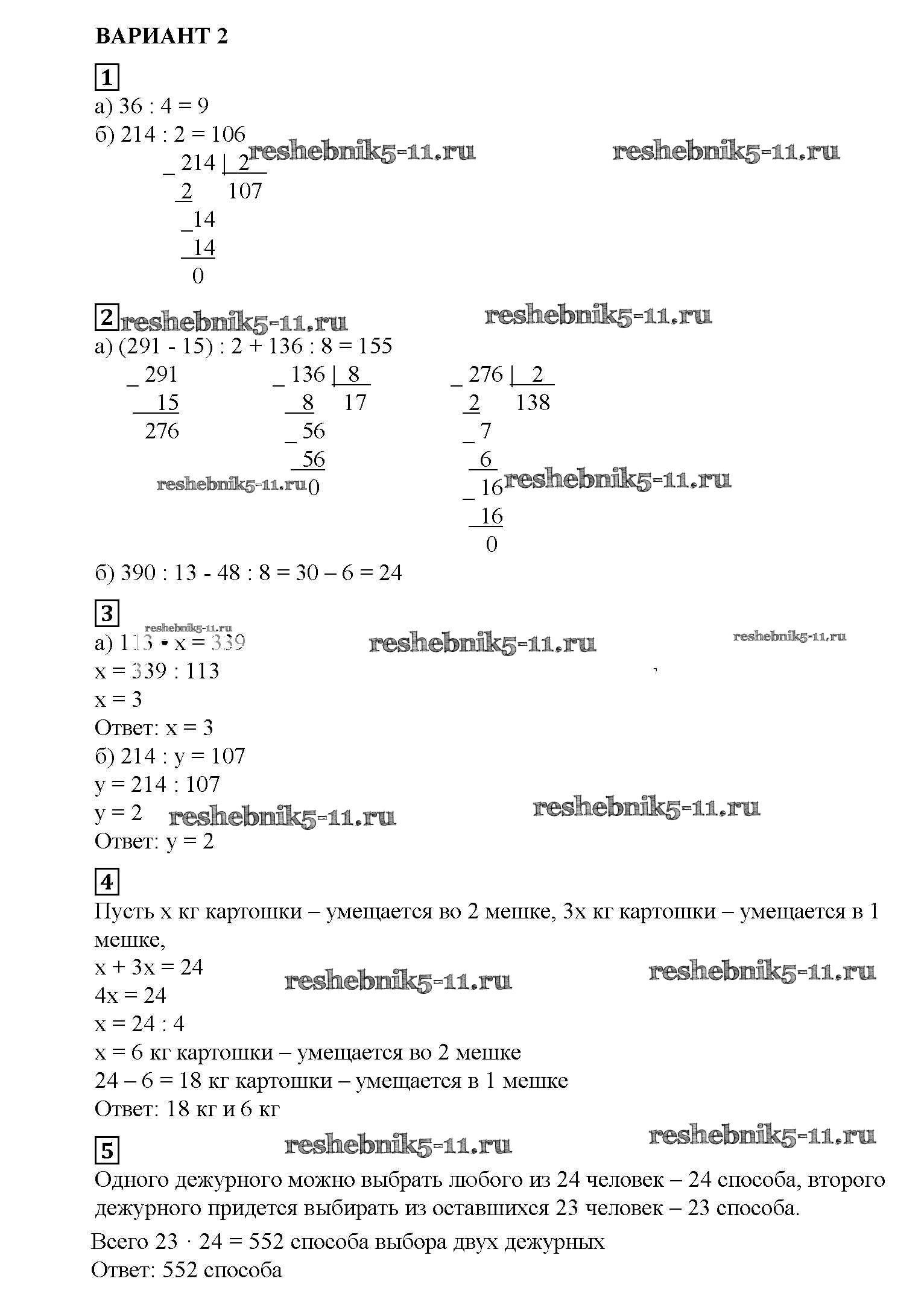 Готовая домашняя работа с ответами по Математике за 5 класс Попов Дидактические материалы УМК Экзамен 2017 ФГОС - СР №12. Деление вариант №2