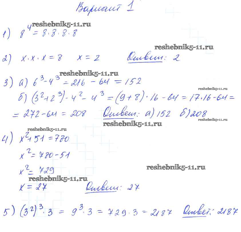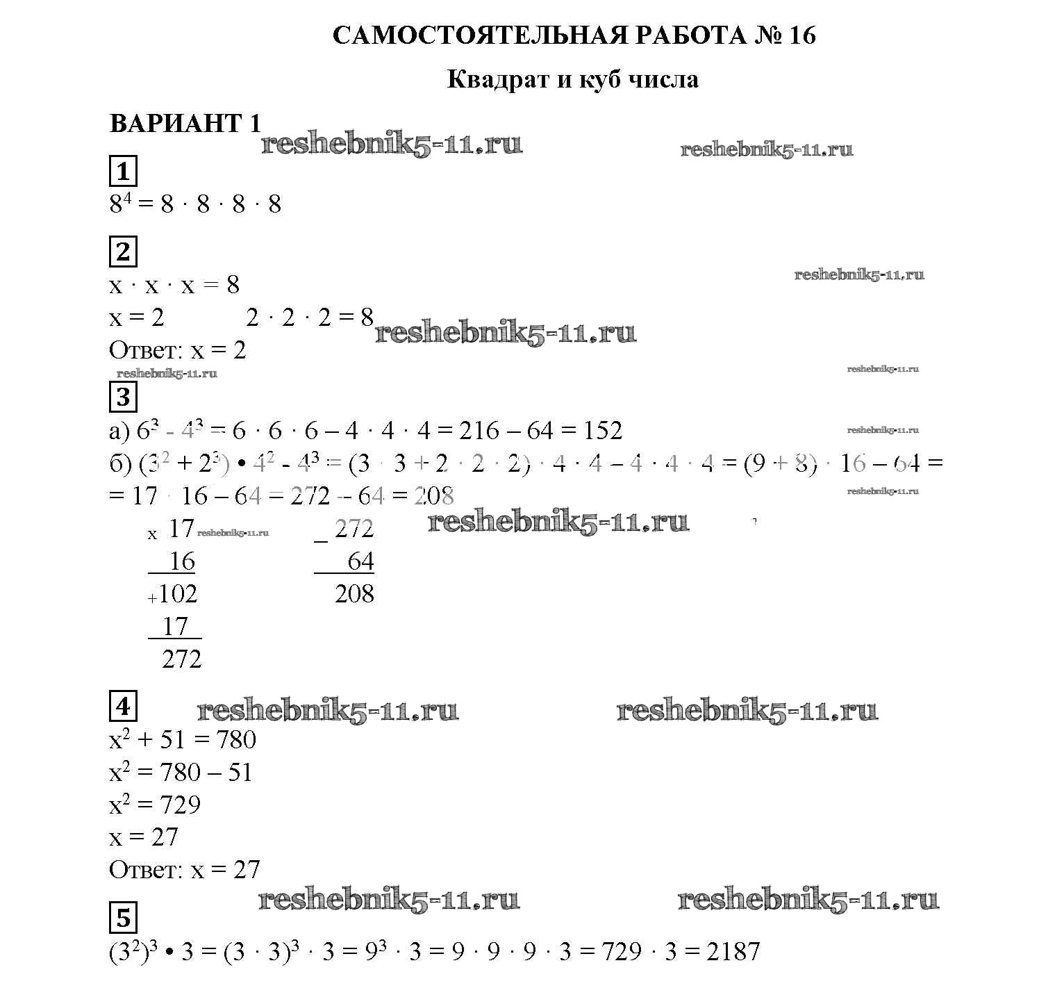 Готовая домашняя работа с ответами по Математике за 5 класс Попов Дидактические материалы УМК Экзамен 2017 ФГОС - СР №16. Квадрат и куб числа вариант №1