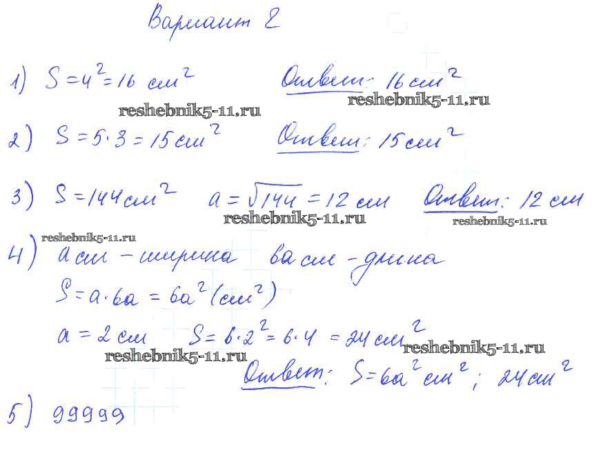 Готовая домашняя работа с ответами по Математике за 5 класс Попов Дидактические материалы УМК Экзамен 2017 ФГОС - СР №18. Площадь. Формула площади прямоугольника вариант №2