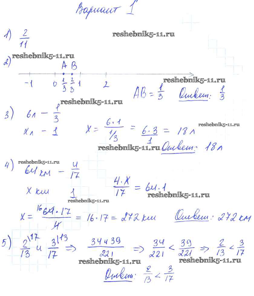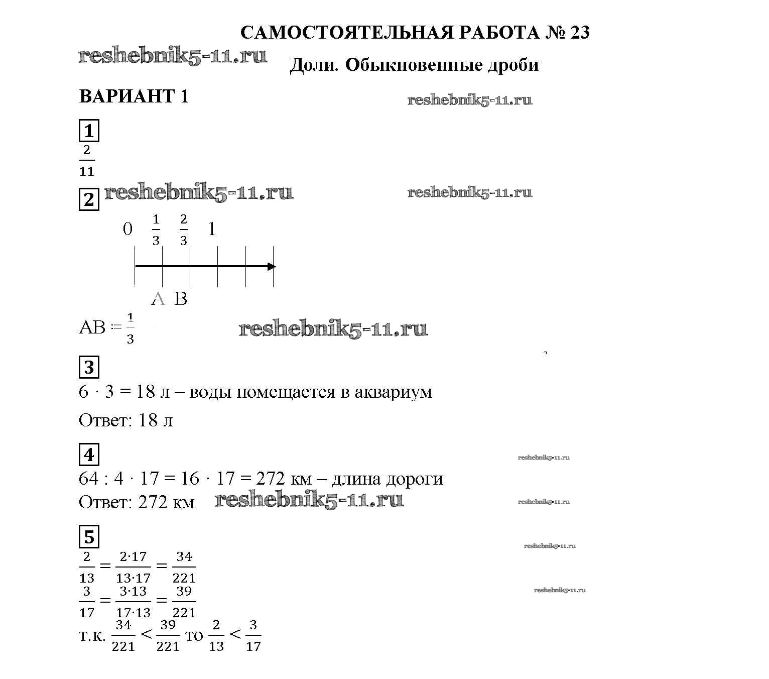 Готовая домашняя работа с ответами по Математике за 5 класс Попов Дидактические материалы УМК Экзамен 2017 ФГОС - СР №23. Доли. Обыкновенные дроби вариант №1