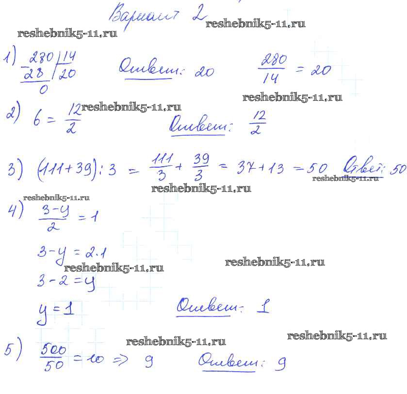 Готовая домашняя работа с ответами по Математике за 5 класс Попов Дидактические материалы УМК Экзамен 2017 ФГОС - СР №27. Деление и дроби вариант №2