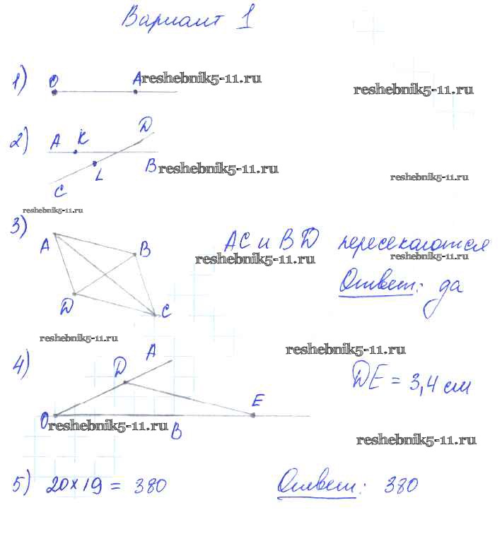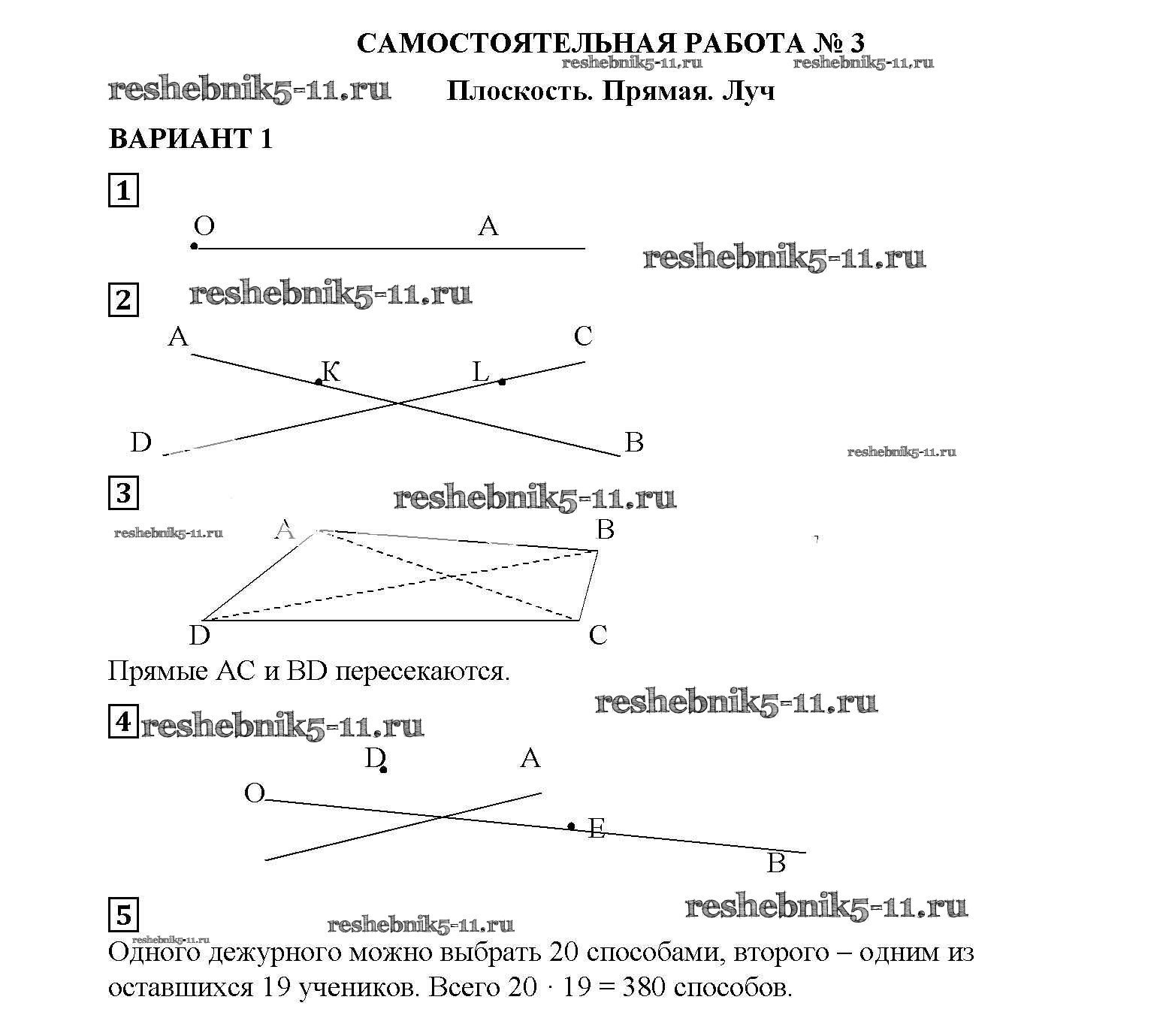 Готовая домашняя работа с ответами по Математике за 5 класс Попов Дидактические материалы УМК Экзамен 2017 ФГОС - СР №3. Плоскость. Прямая. Луч вариант №1