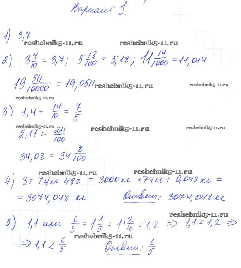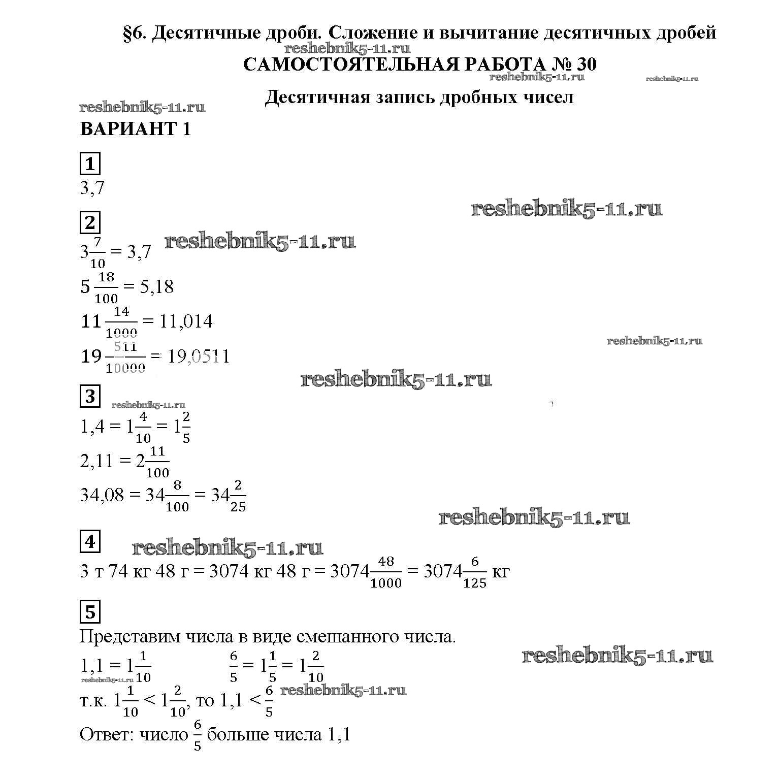 Готовая домашняя работа с ответами по Математике за 5 класс Попов Дидактические материалы УМК Экзамен 2017 ФГОС - СР №30. Десятичная запись дробных чисел вариант №1