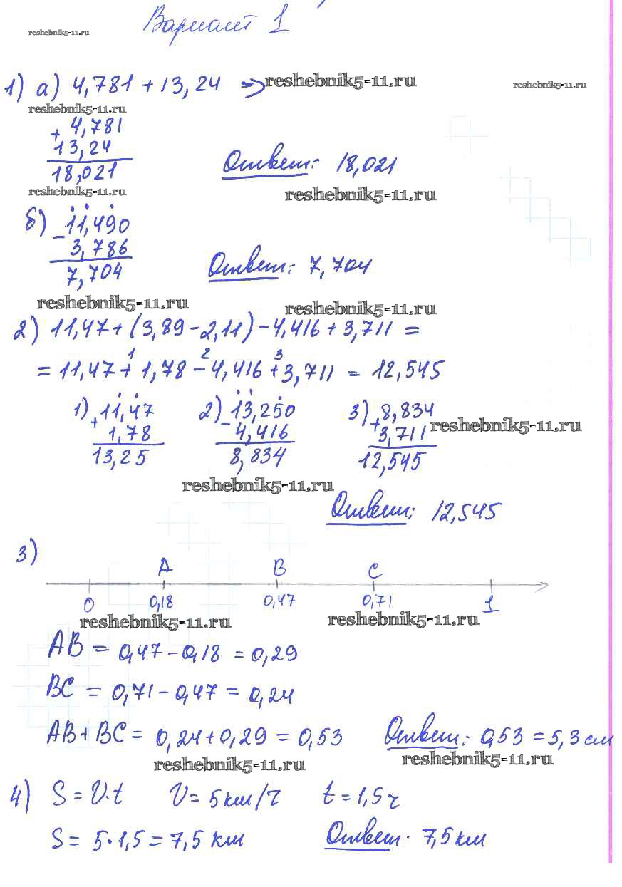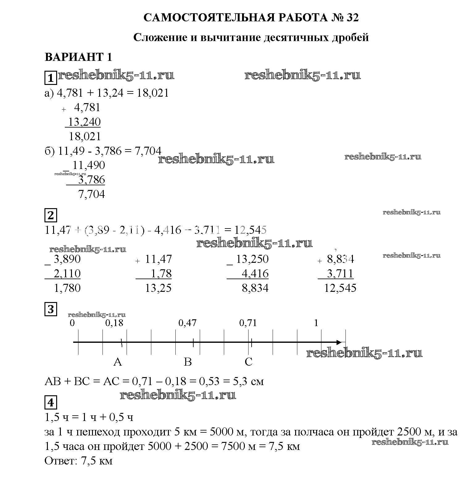Готовая домашняя работа с ответами по Математике за 5 класс Попов Дидактические материалы УМК Экзамен 2017 ФГОС - СР №32. Сложение и вычитание десятичных дробей вариант №1
