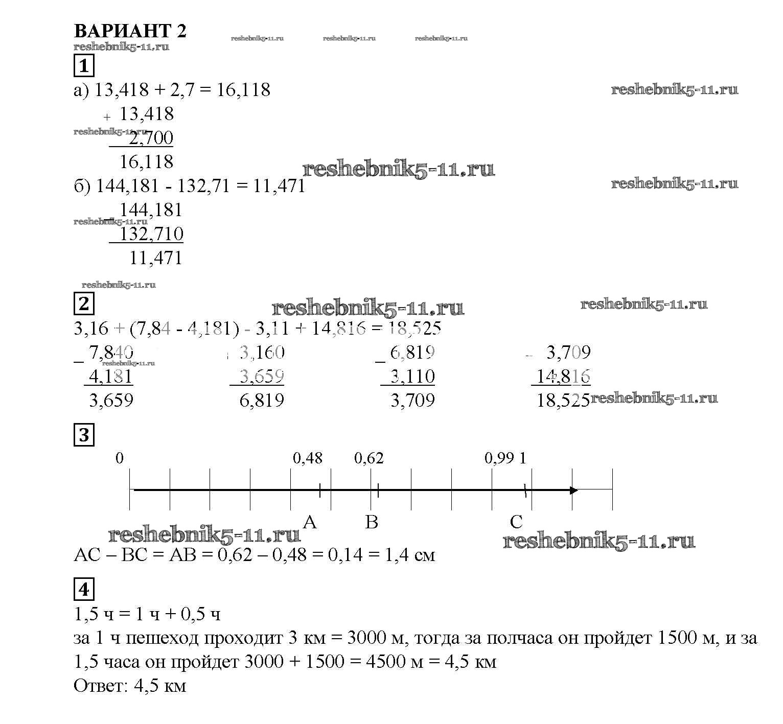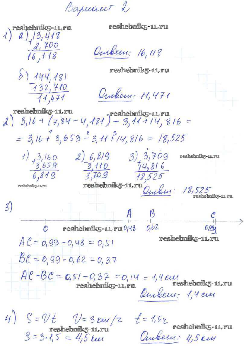 Готовая домашняя работа с ответами по Математике за 5 класс Попов Дидактические материалы УМК Экзамен 2017 ФГОС - СР №32. Сложение и вычитание десятичных дробей вариант №2