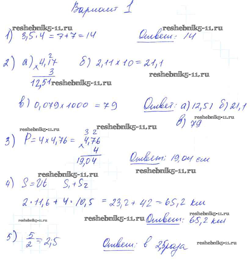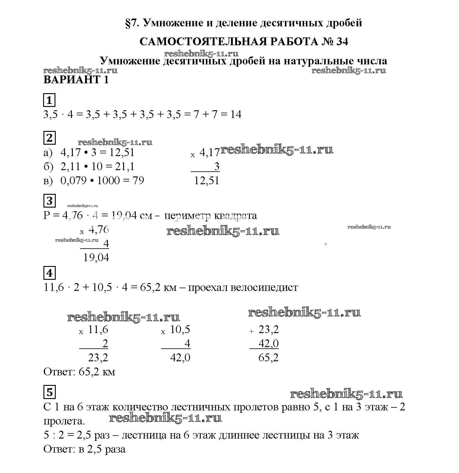 Готовая домашняя работа с ответами по Математике за 5 класс Попов Дидактические материалы УМК Экзамен 2017 ФГОС - СР №34. Умножение десятичных дробей на натуральные числа вариант №1