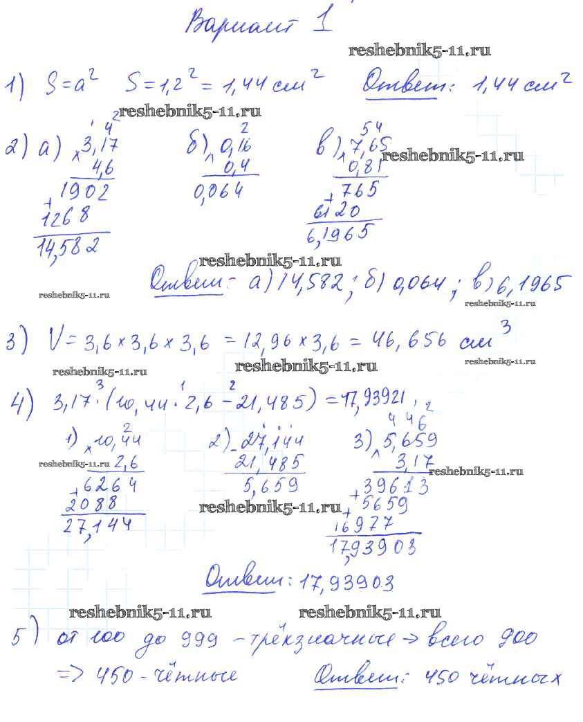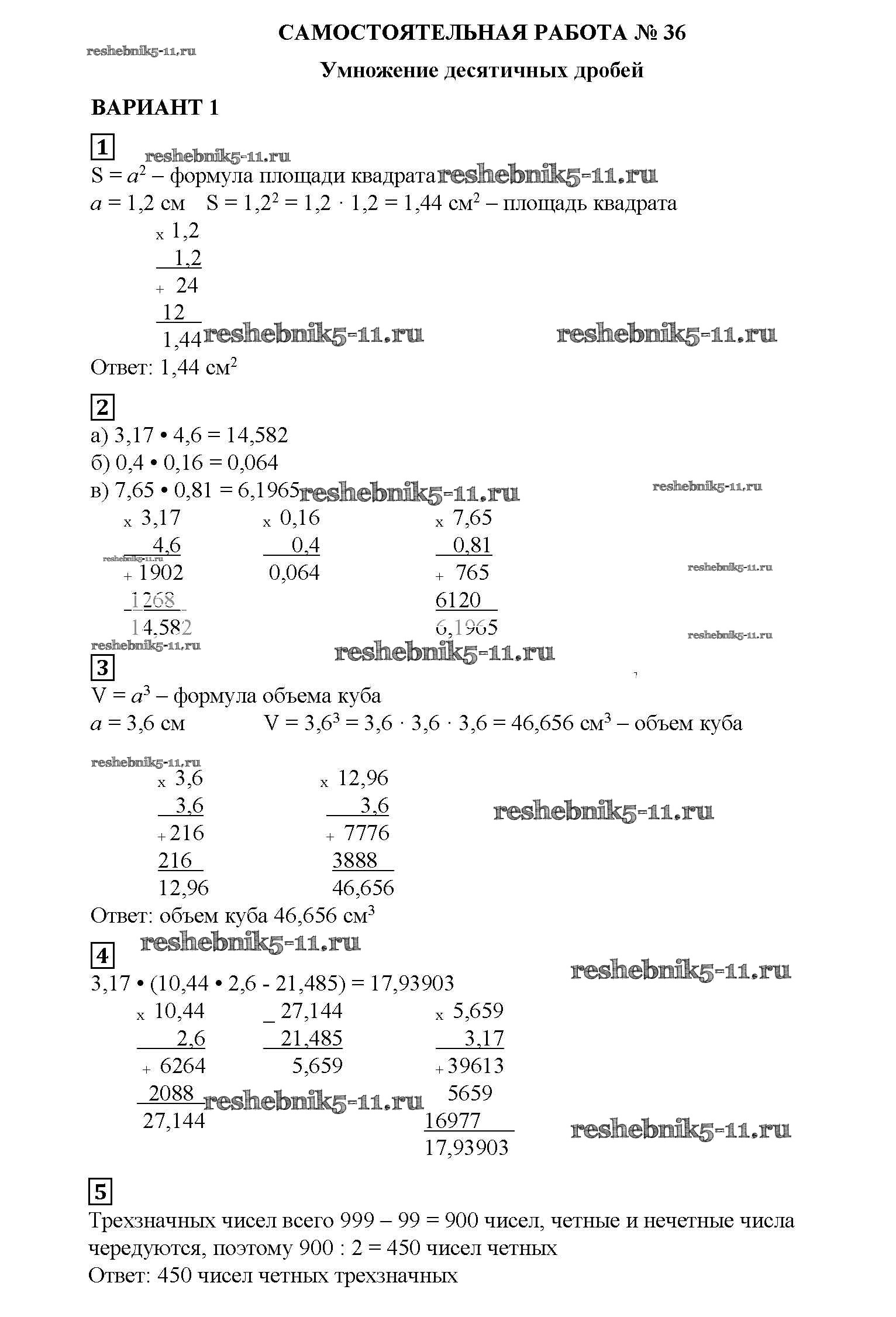 Готовая домашняя работа с ответами по Математике за 5 класс Попов Дидактические материалы УМК Экзамен 2017 ФГОС - СР №36. Умножение десятичных дробей вариант №1