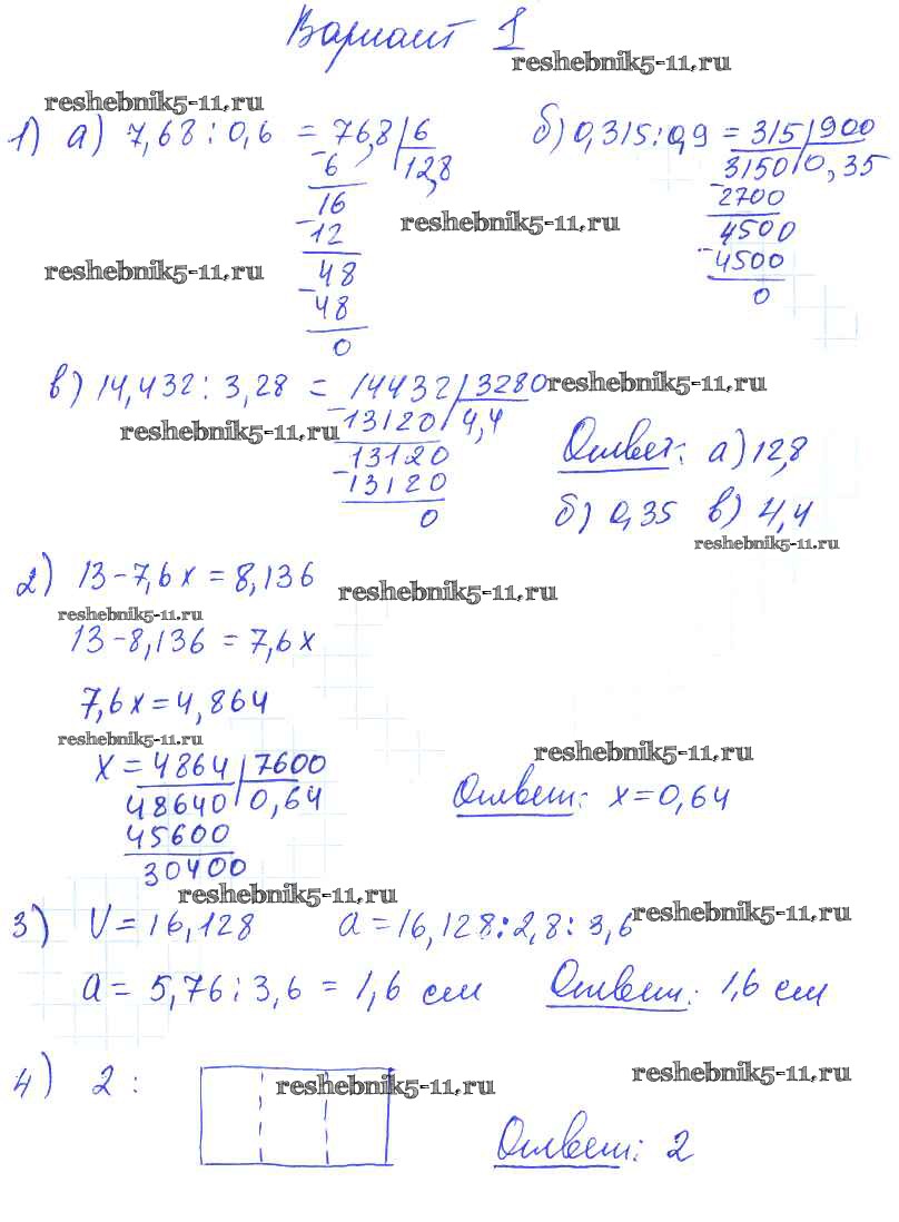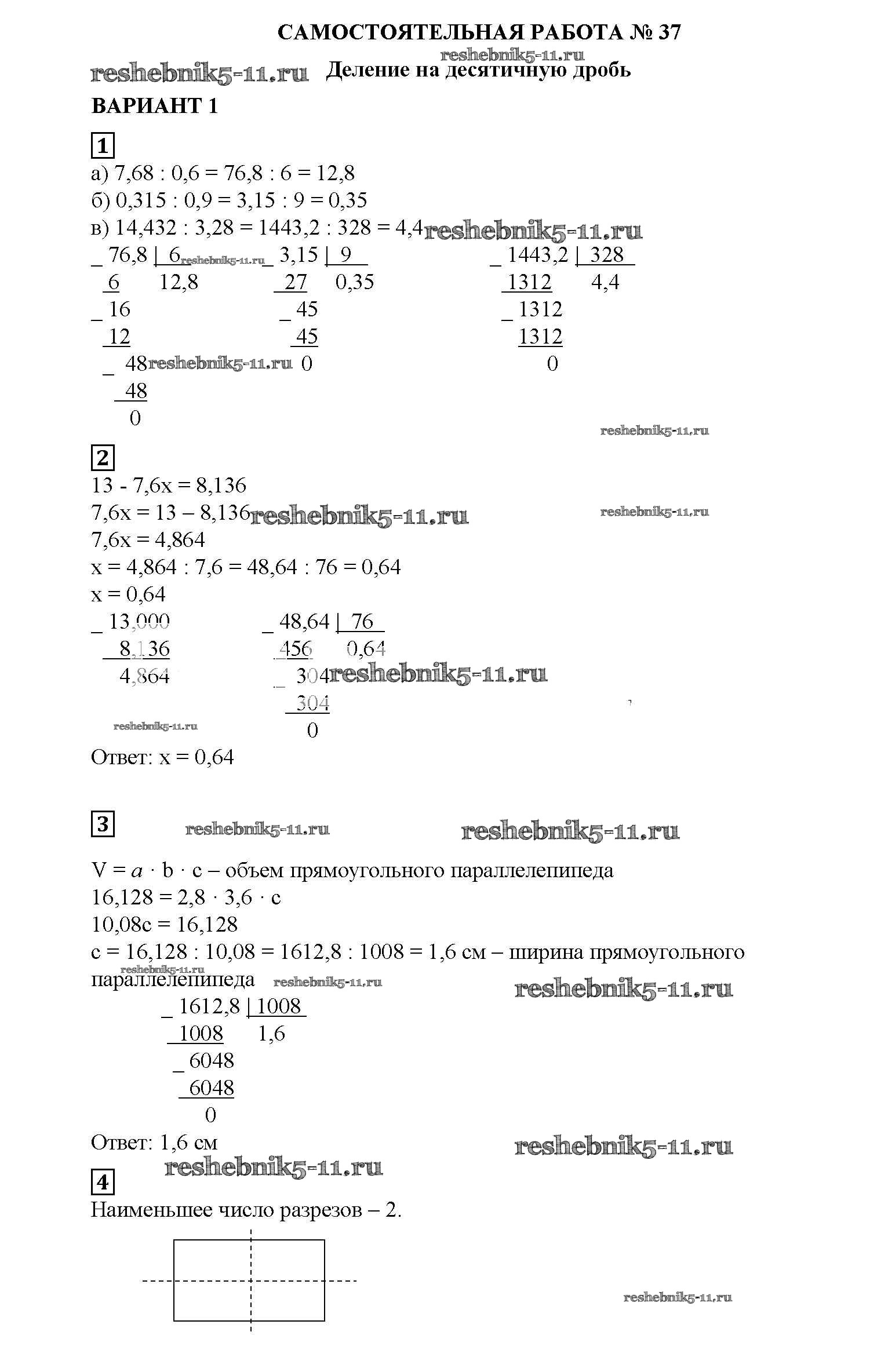Готовая домашняя работа с ответами по Математике за 5 класс Попов Дидактические материалы УМК Экзамен 2017 ФГОС - СР №37. Деление на десятичную дробь вариант №1