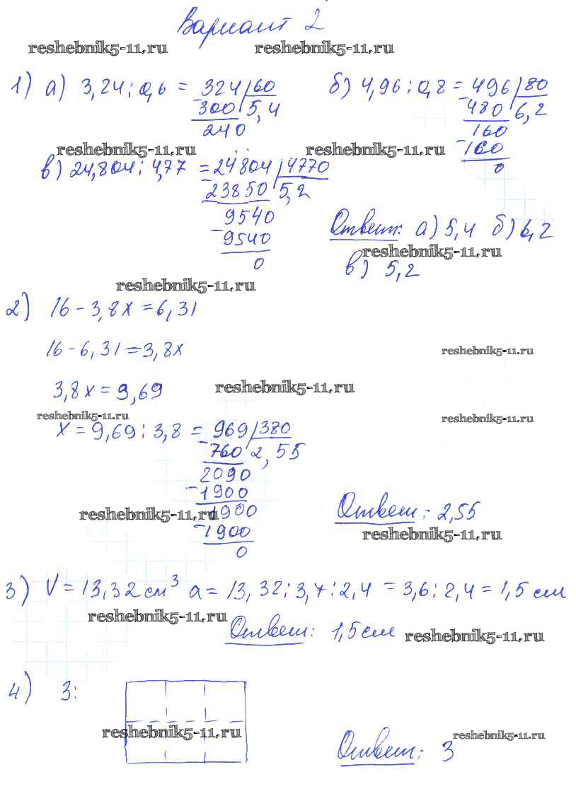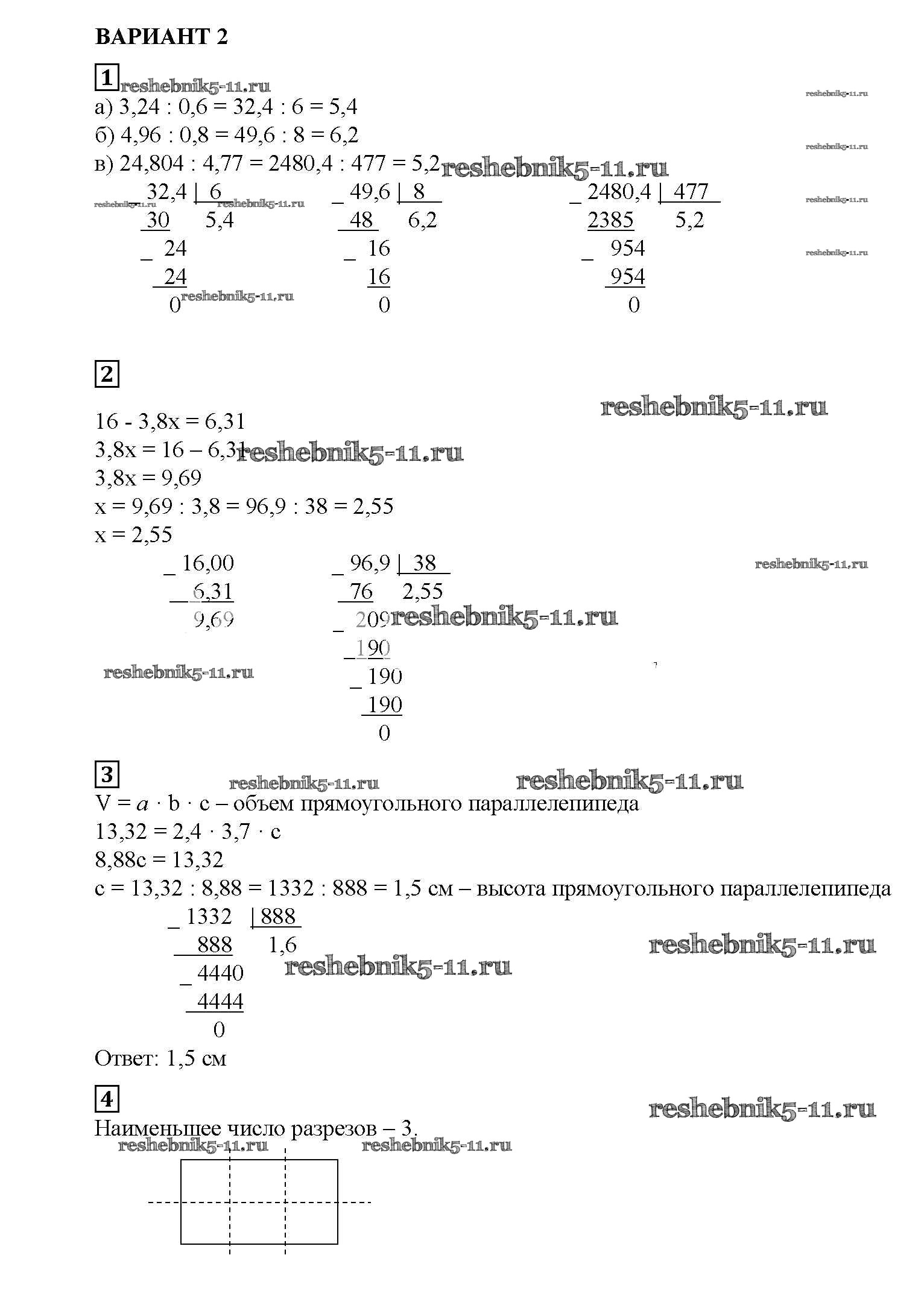 Готовая домашняя работа с ответами по Математике за 5 класс Попов Дидактические материалы УМК Экзамен 2017 ФГОС - СР №37. Деление на десятичную дробь вариант №2