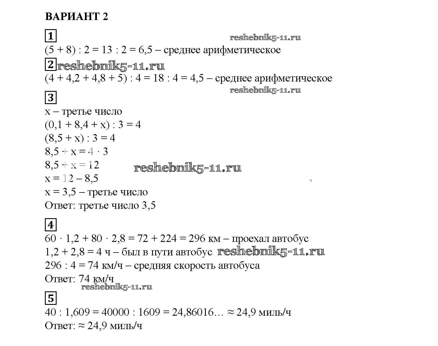 Готовая домашняя работа с ответами по Математике за 5 класс Попов Дидактические материалы УМК Экзамен 2017 ФГОС - СР №38. Среднее арифметическое вариант №2