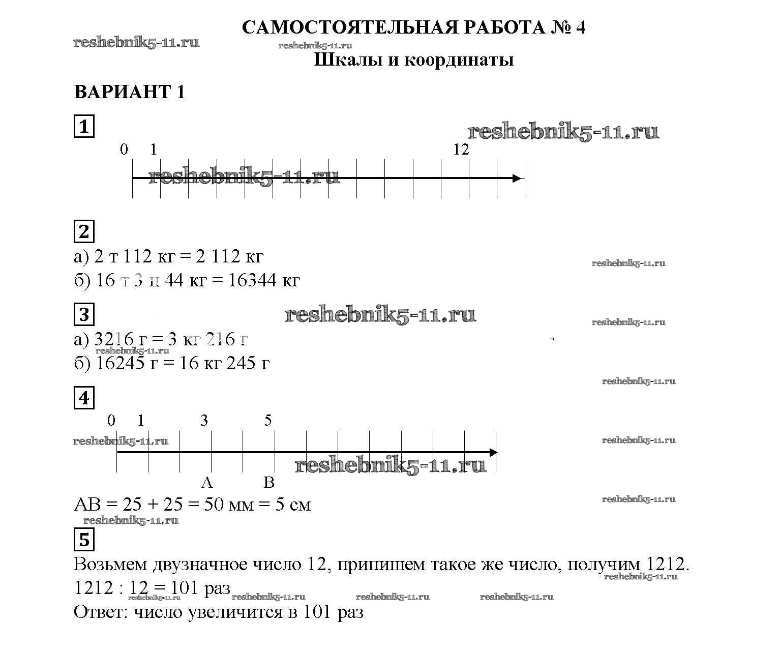 Готовая домашняя работа с ответами по Математике за 5 класс Попов Дидактические материалы УМК Экзамен 2017 ФГОС - СР №4. Шкалы и координаты вариант №1